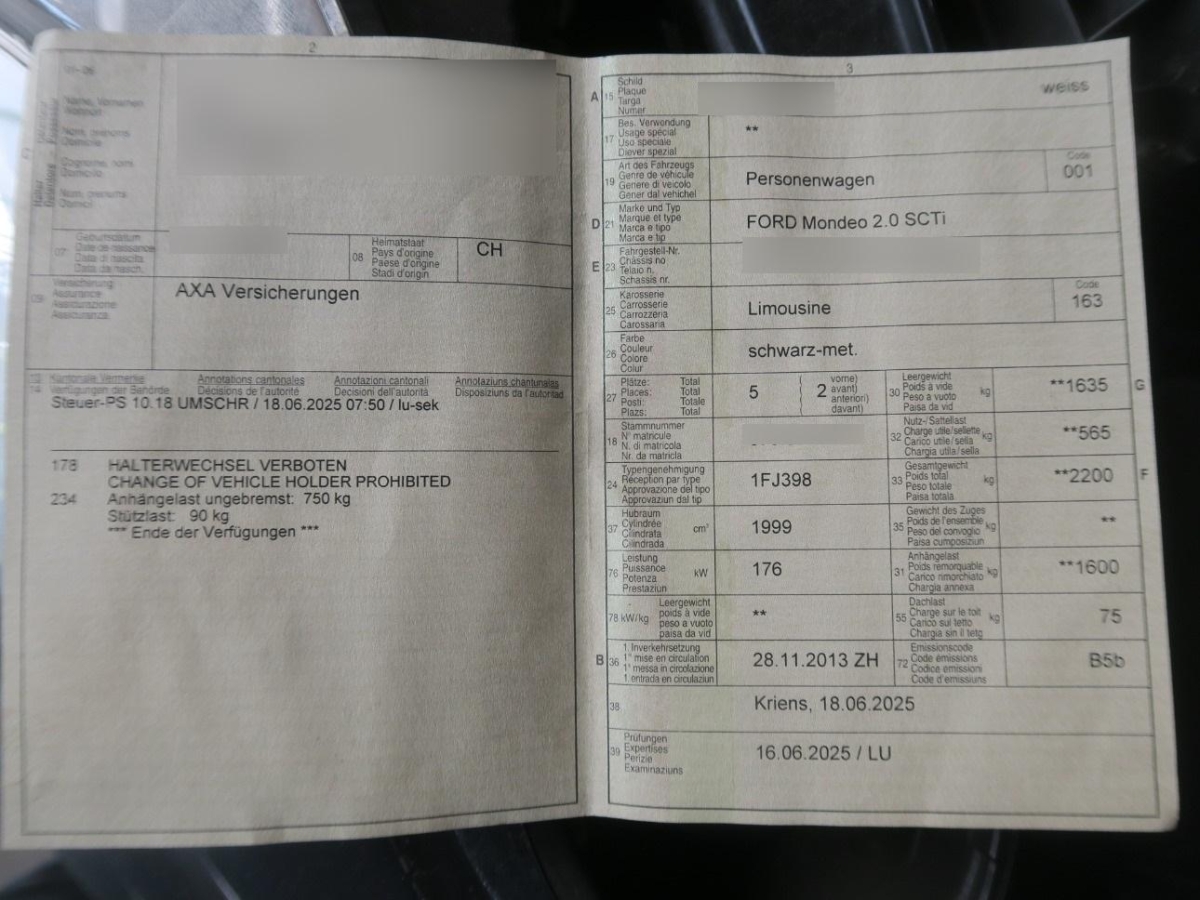 Fahrzeugausweis Vorhanden