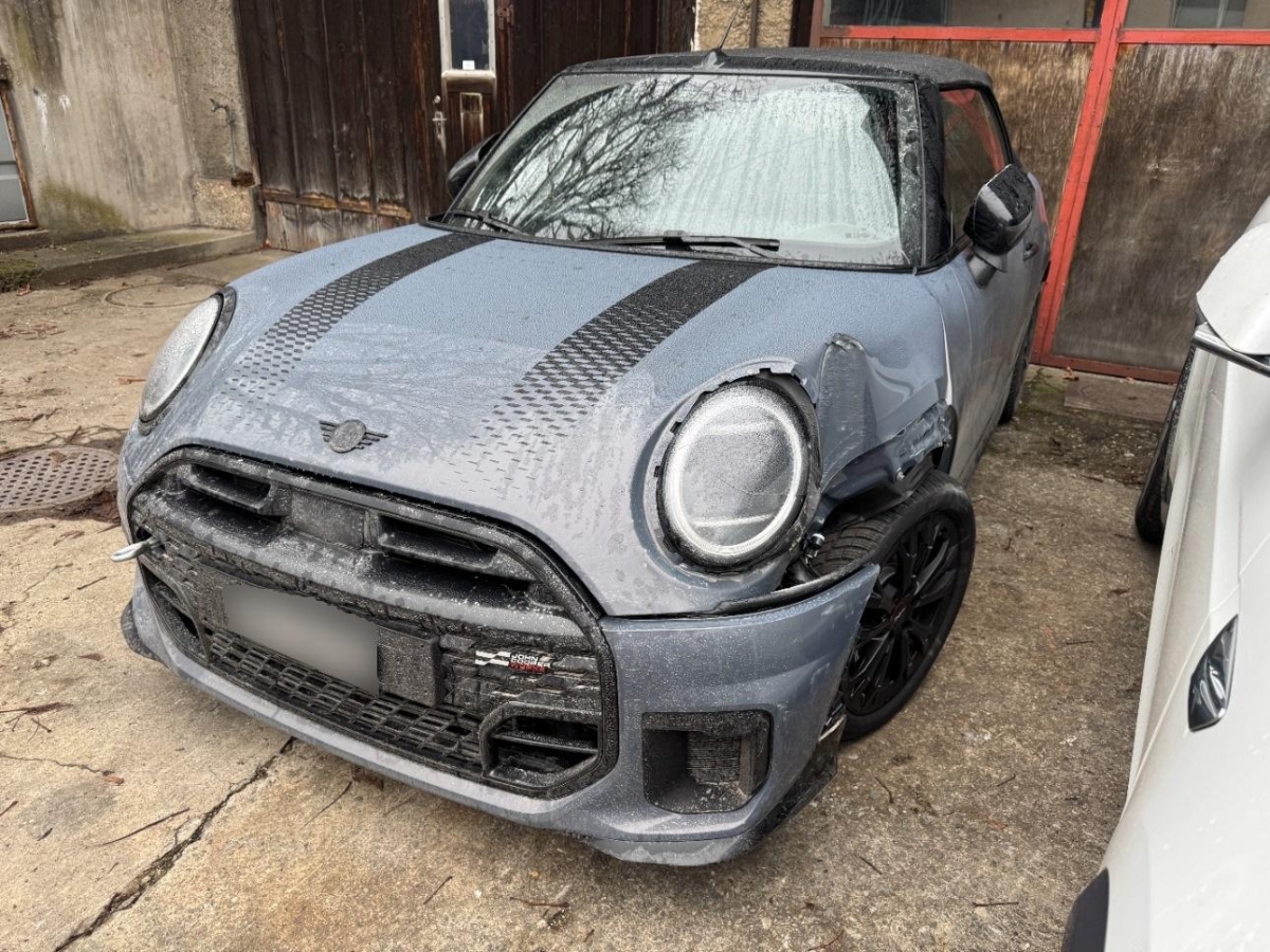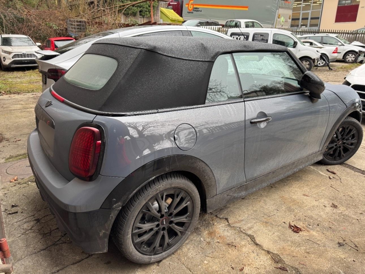 Paket: Paket XL (Assist: Driving Assistant Plus – Kamera- und radarbasiertes Fahrerassistenzsystem bestehend aus: Aktive Geschwindigkeitsregelung, Lenk- und Spurführungsassistent, Speed Limit Info, automatischer Speed Limit Assistant., Komfortzugang beinhaltet folgende Funktionen: – schlüsselloser Zugang zum Fahrzeug – Welcome-Inszenierung ab ca. 3m Annäherung ans Fahrzeug – automatische Entriegelung bei ca. 1m Annäherung ans Fahrzeug (in Fahrzeugrichtung) – automatische Verriegelung beim Entfernen vom Fahrzeug ab ca. 2m beinhaltet den Digital Key‘ mit folgenden Funktionen: – Ver- und Entriegeln sowie Starten des Fahrzeugs unter Verwendung eines kompatiblen Smartphones – Key Card mit NFC-Technologie – digitaler Schlüssel für da, Licht: Fernlichtassistent, Media: MINI Navigation AR Folgende Navigationsfunktion: – Navigationsführung mit Augmented View inkl. Abbiegehinweise, Fahrspurvorschlag, POI-Anzeige und Unterstützung bei der Parkplatzsuche im Control Display, Windschutz – Bietet optimalen Windschutz bei Fahrten mit geöffnetem Verdeck – Kann situativ eingesetzt werden (Hinweis: Die hinteren Sitzplätze werden überdeckt) und wird über 4 Stiftpunkte sicher befestigt – Im zusammengeklappten Zustand im Gepäckraum mitnehmbar – Inklusive Aufbewahrungstasche, MINI Experience Modes – Die MINI Experience Modes bieten intensive und klar differenzierte Modi, die den Gesamteindruck des MINI Innenraums verändern. Der Kunde erlebt unterschiedlich Charaktere auf verschiedenen Wahrnehmungsebenen., Alarmanlage – Inkl. Überwachung der Türen, Front- und Heckklappe, Innenraumschutz, Neigungsalarmgeber, Notstromsirene und Diebstahlsicherung., Sitze: Vordersitze heizbar, Wireless Charging Ablage, Assist: Parking Assistant Plus Kamera- und ultraschallbasiertes Assistenzsystem bestehend aus Surround View System und Remote 3D View sowie den Funktionen der SA 5DM ‘Parking Assistant’., Media: Harman Kardon Surround Sound System, Head-Up Display – Anzeige verschiedener Informationen wie Navigationsinformationen, Geschwindigkeitsbegrenzungen, Warnhinweise, etc. (ausstattungsabhängig)., Sitze: Aktivsitz für Fahrer – Lordosenstütze für Fahrer in Höhe und Tiefe elektrische verstellbar und sorgt so für eine orthopädisch einwandfreie Sitzhaltung. – Aktivfunktion der Lordose für ermüdungsfreies Sitzen durch Mobilisierung der unteren Wirbelsäule über eine Massagefunktion, Sitze: Sitzverstellung, elektrisch, mit Memory-Funktion – elektrisch verstellbar: Sitzhöhe, Lehnenneigung, Sitzposition, Sitzflächenneigung – Fahrersitz mit Sitzmemory, 2 Positionen speicherbar inklusive Spiegelposition – Außenspiegel: Memoryfunktion, Bordsteinautomatik, Media: Personal eSIM, Paket: Innen- und Aussenspiegelpaket – Außenspiegel mit Bordsteinautomatik (auf Beifahrerseite bei Einlegen des Rückwärtsganges) und elektrischer Anklappfunktion – Logoprojektion Außenspiegel Fahrer- und Beifahrerseite – Außenspiegel Fahrerseite mit automatischer Abblendung – Memoryfunktion, Verdeck MINI Yours – Schwarze Grundfarbe mit eingewebtem Muster Union Jack auf der Dachfläche., Innenspiegel automatisch abblendbar, Licht: LED Scheinwerfer mit erweiterten Umfängen – Bi-LED-Licht für Abblendlicht und Fernlicht – LED-Heckleuchte – Abbiegelicht in LED-Technologie (adaptive Lichtverteilung mit erhöhter Seitenausleuchtung für Stadt-, Überland- und Autobahnverkehr, Schlechtwetter) – Drei charakteristische Licht-Signaturen (Tagfahrlicht-Signatur, Front und Heckleuchte) über Lichtmenü wählbar, inklusive dazugehöriger Welcome- und Goodbye-Inszenierung), Paket: Paket XS, Paket: John Cooper Works Trim (Fahrwerk: Adaptives Fahrwerk, Lenkrad: Lenkradheizung, Getriebe: 7-Gang Sport-Doppelkupplungsgetriebe – Schaltwippen am Lenkrad – Sportlichere, kürzere Schaltzeiten, JCW Sportbremse, Sitze: John Cooper Works Sportsitze, Lenkrad: John Cooper Works Lenkrad), Lackierung: Metallic-Lackierung, Räder: 18″ Leichtmetallräder John Cooper Works Lap Spoke 2-tone – 7 J×18 / Bereifung 215/40 R 18, Spiegelkappen schwarz, Sport Stripes schwarz, Polster: Vescin-/Strick Kombination JCW