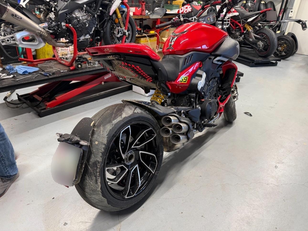 Antrieb, Armaturen, Auspuffkollektor, Kabelstrang, Motor, Rad hinten, Rahmen, Rücklicht, Scheinwerfer, Schutzblech hinten, Schwinge, Sitz, Zündschloss