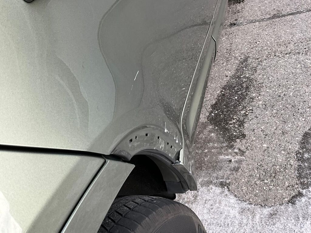 Seitenkollision mit Beschädigung der hinteren linken Tür, Felge und Radaufhängung. Airbag und Gurtstraffer wurden ausgelöst, wodurch der Austausch vom Dachhimmel und mehrerer Passivsicherheitskomponenten erforderlich ist. (Airbag, Steuergerät, Gurtstraffer…)