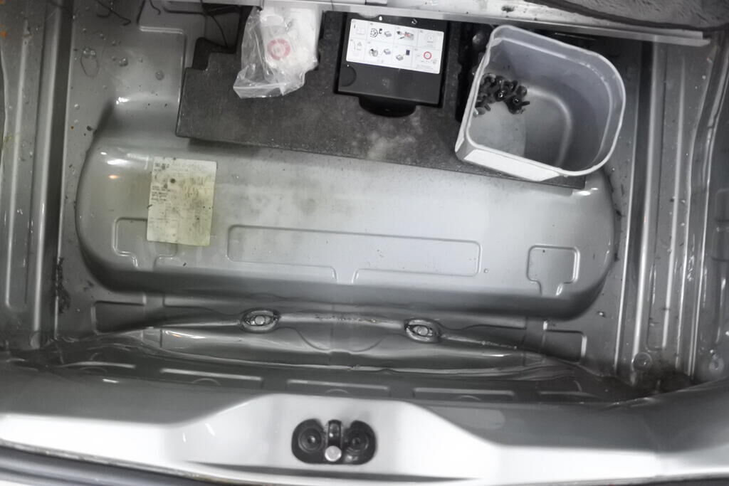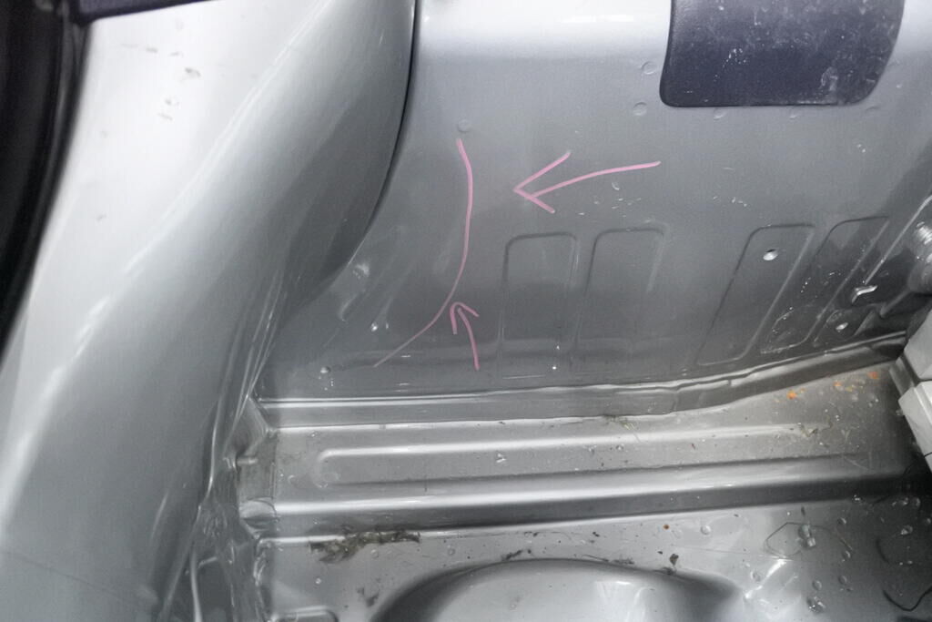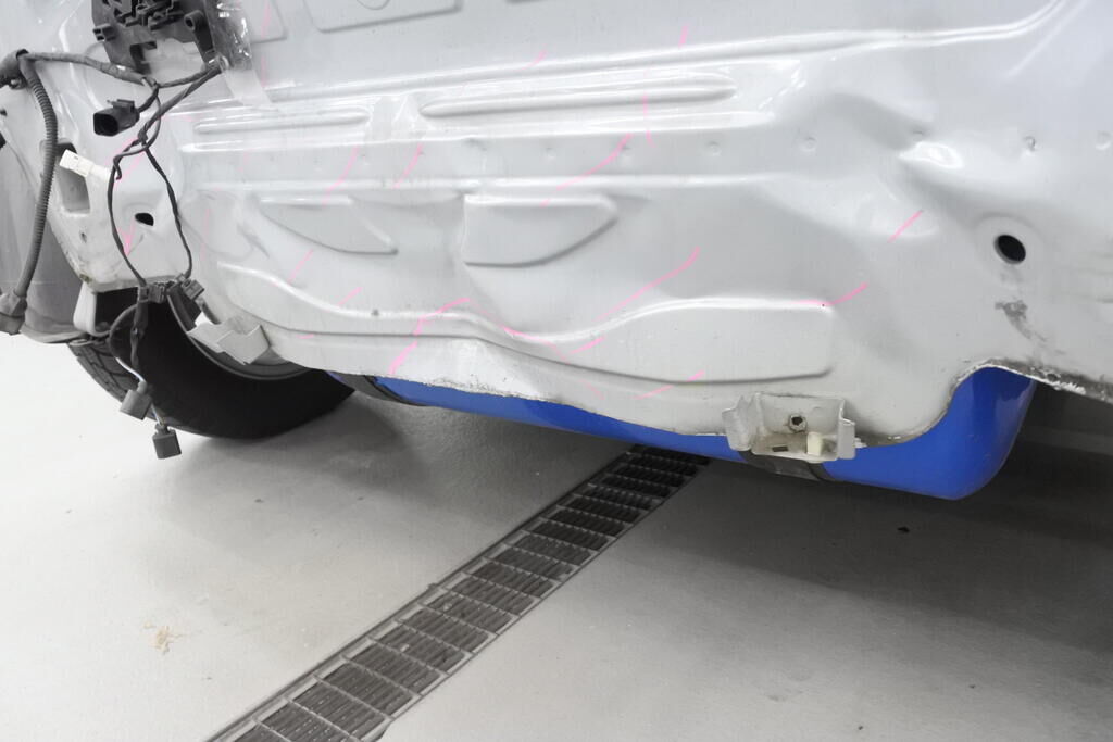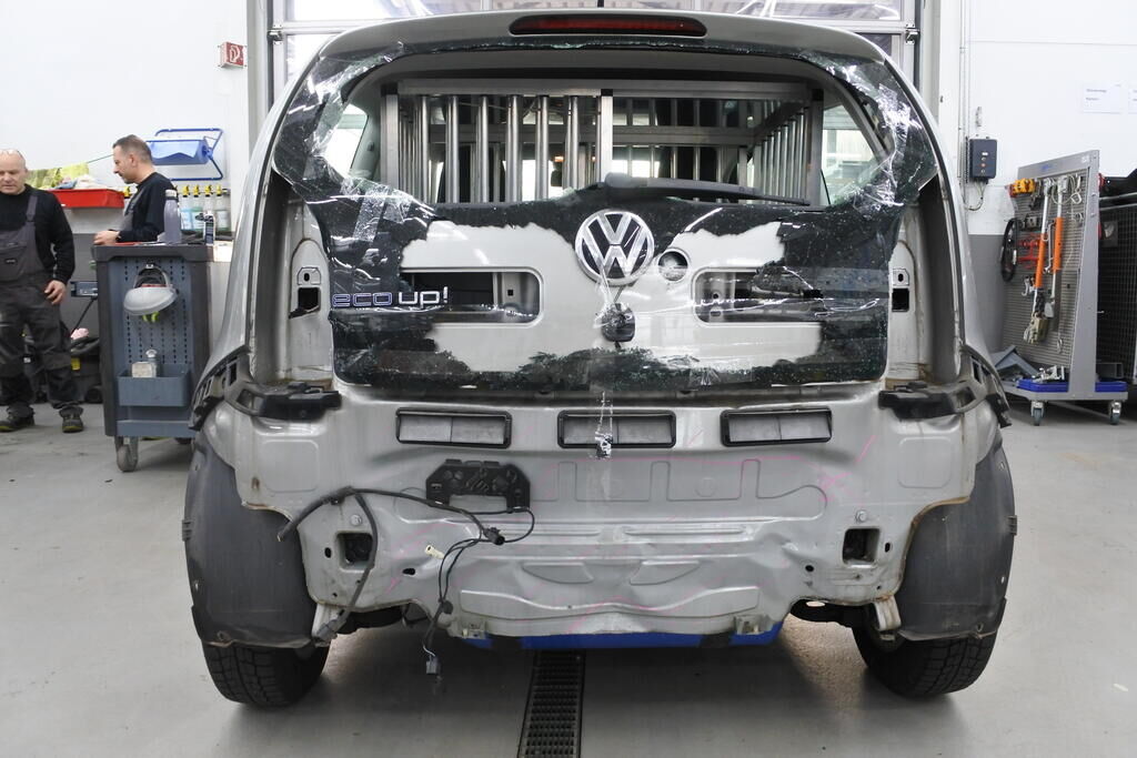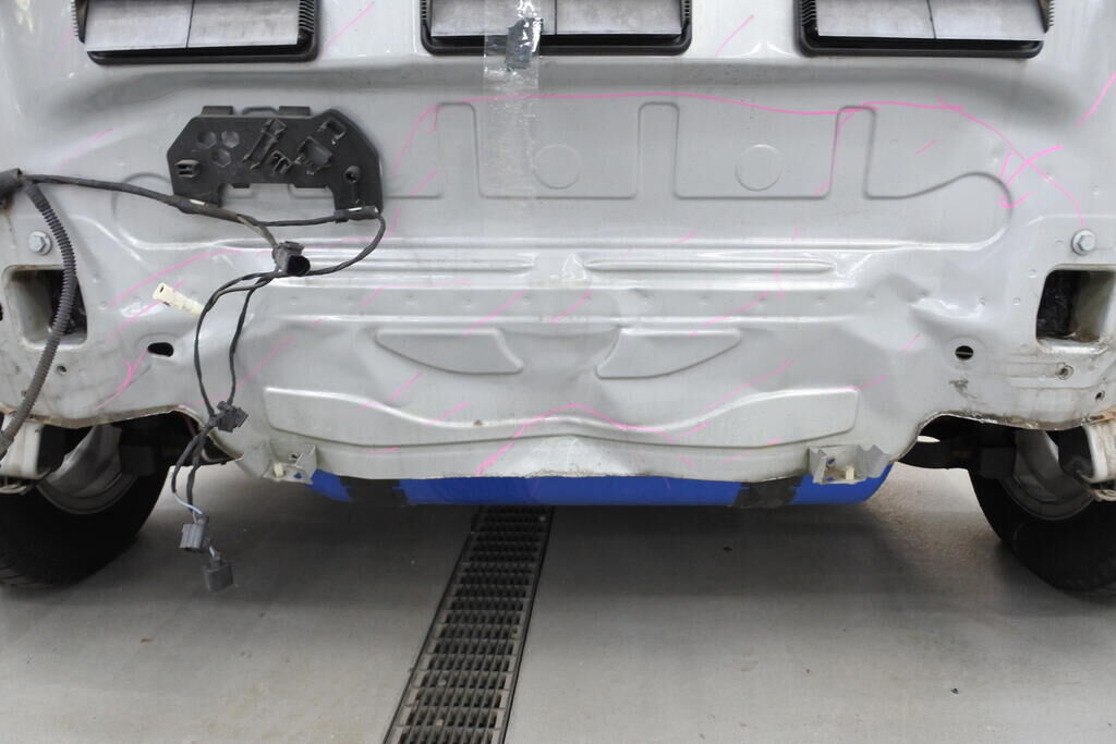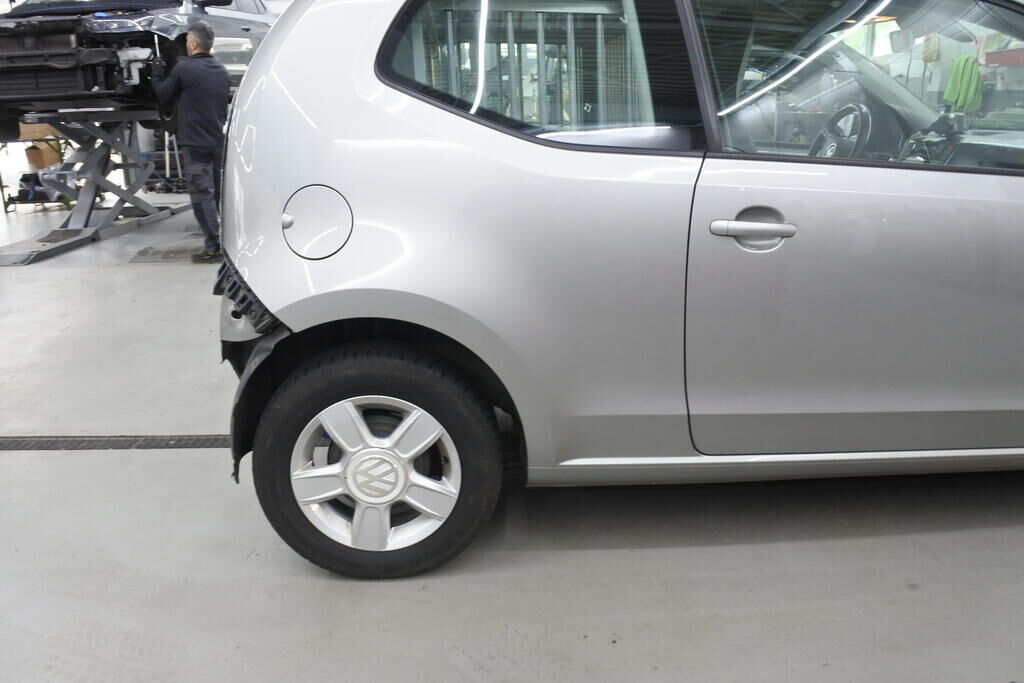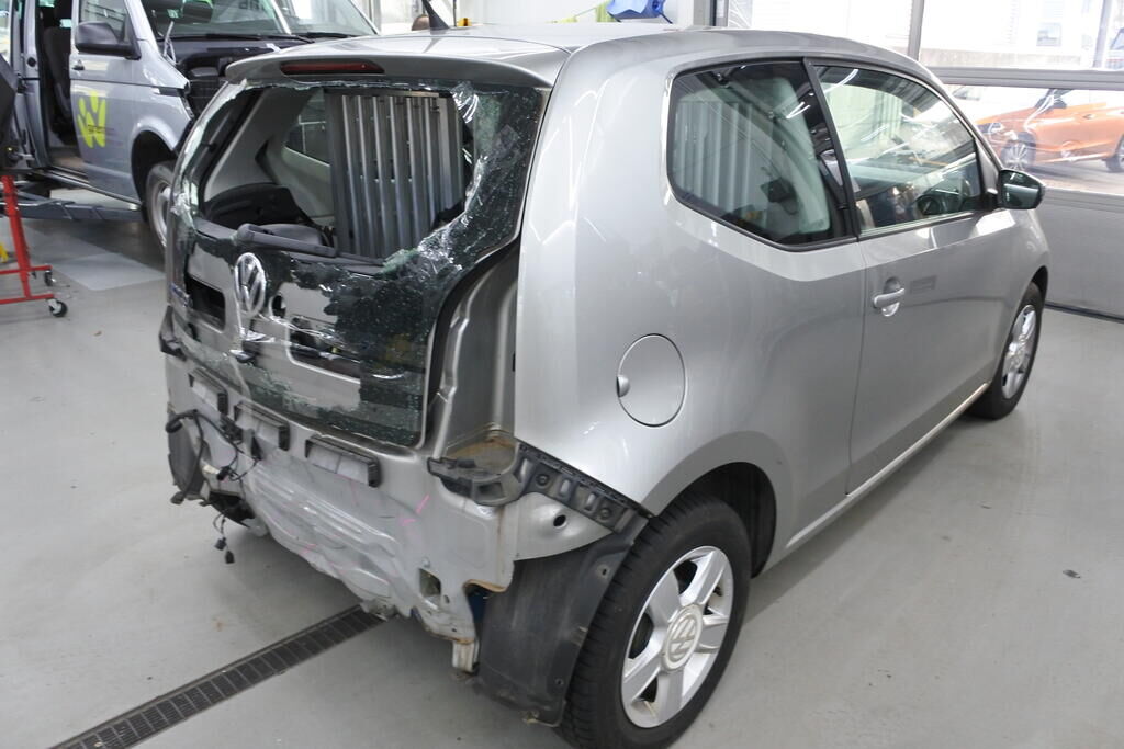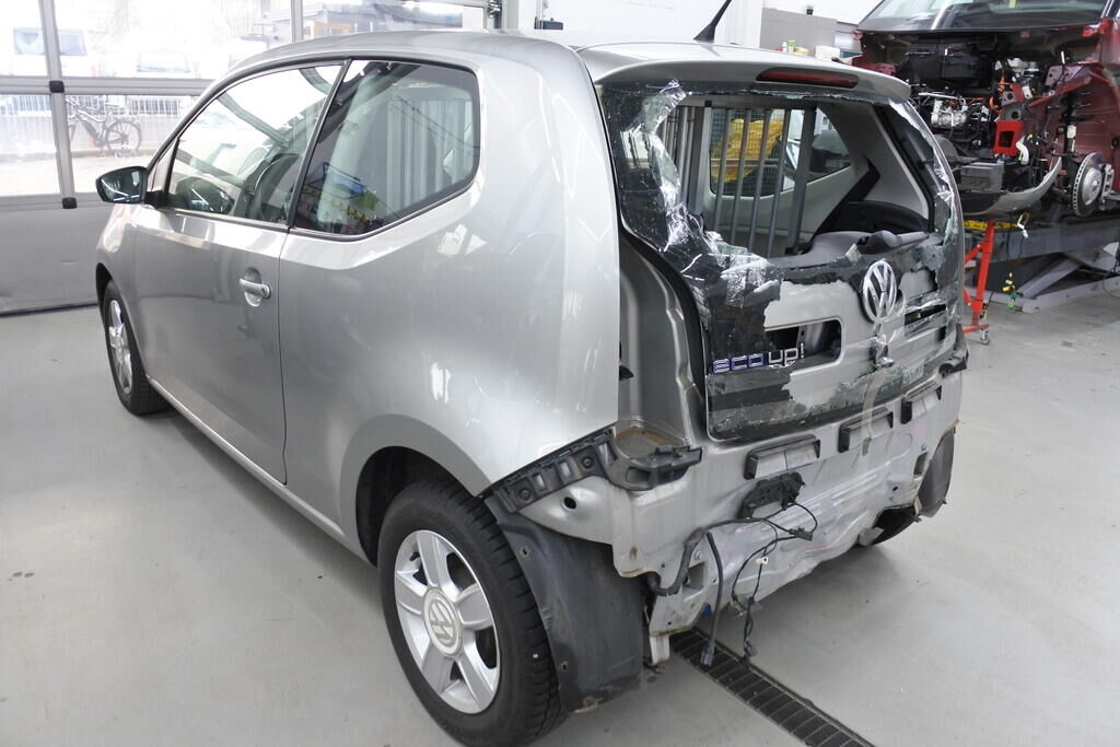 Die Stossstange mit Anbauteilen, die Heckklappenverglasung, das Heckblech und der Kofferboden sowie das Radhaus innen links sind beschädigt.