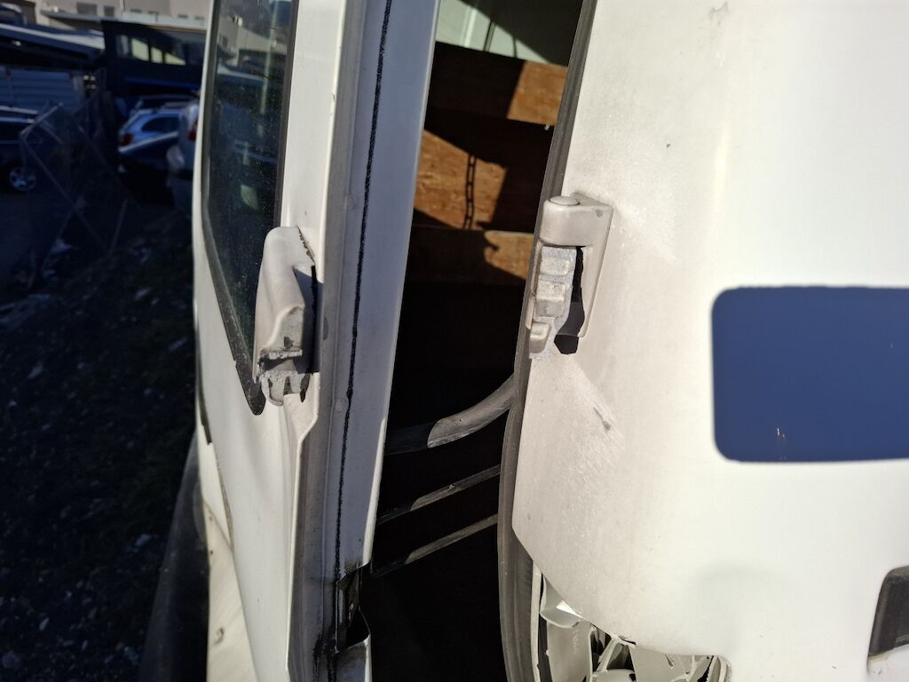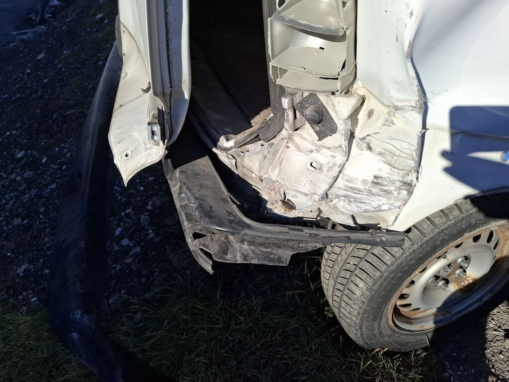 Dommage arrière droit: porte battante Montant C panneau latéral fortement pliés déformés emboutis enfoncés endommagés, charnières de porte battante cassées endommagées, enveloppe de pare chocs feu cassés fissurés éclatés arrachés endommagés.