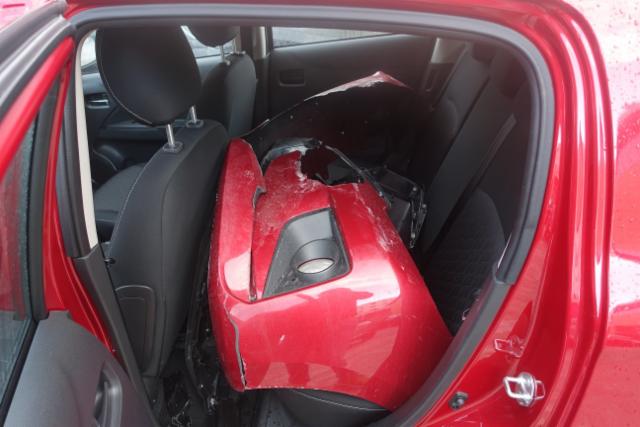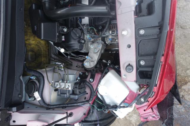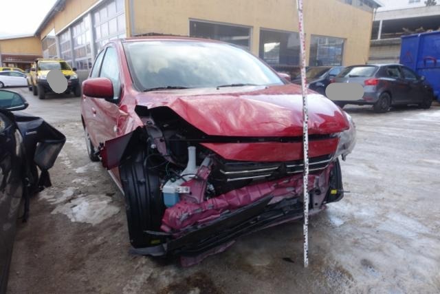Front Front eingedrückt. Kotflügel vorne rechts und links eingedrückt. Motorhaube eingedrückt. Frontblech/Maskenblech eingedrückt. Längsträger vorne rechts und links gestaucht. Fahrzeugvorbau nach rechts verschoben. Motor Achse Innenraum Sonstige Schäden |