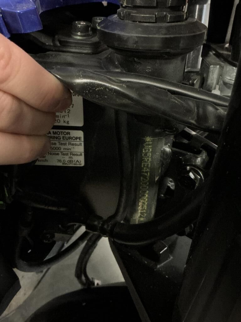 Echappement, levier frein, poids de guidon droit griffés (dommages préexistants).