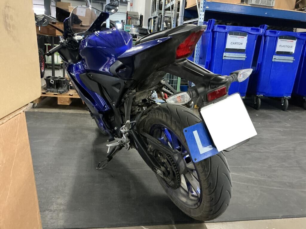Carénage avant gauche , phare avant, support compteur, carénage arrière gauche, clignotant avant gauche cassés. Rétroviseur gauche, poids de guidon gauche, levier embrayage, sélecteur vitesses, cale pied gauche griffés.