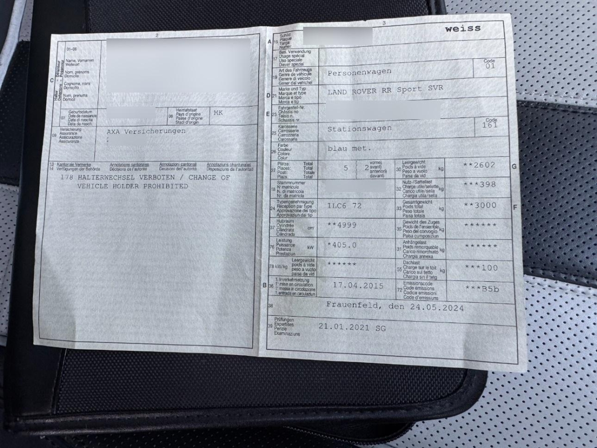 | Fahrzeugausweis | Vorhanden |