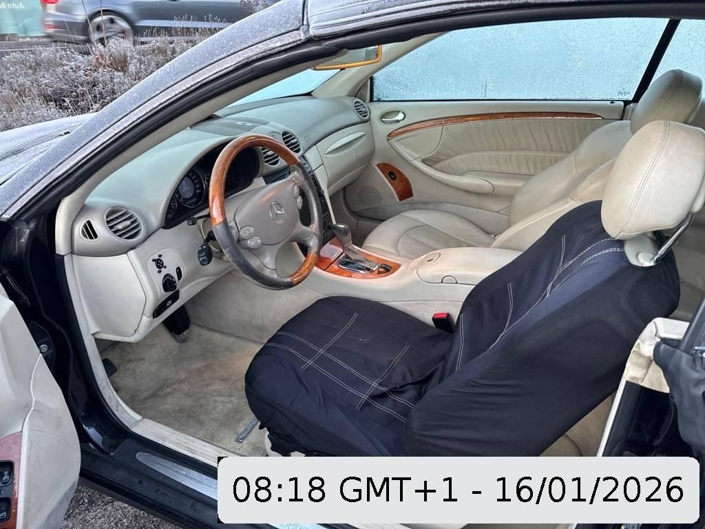 Polster: Stoff-Ausstattung, Scheibenwischer vorne mit Intervall, Licht: Nebelschlussleuchte, Lichtwarnsummer, Airbag: Airbag Fahrer und Beifahrer, MB-Radio Audio 10 RDS, Wegfahrsperre elektronisch, Kartentaschen an den Rückenlehnen, Sitze: Armlehne vorne mit Ablagefach, Wartungsintervall-Anzeige, Antiblockiersystem (ABS), Regensensor für Scheibenwischer vorne, Leuchtweitenregulierung von innen, Assist:Tempomat, Seitenaufprall-Schutzsystem, Verbandskasten, Airbag:Sitzbelegungserkennung für Airbags, Bremsassistent (BAS), Getriebe: 6-Gang-Getriebe, Getönte Scheiben, Türgriffe aussen in Wagenfarbe, Pollenfilter (Staubfilter), Heckscheibenheizung, Licht:Fahrlichtautomatik, Airbag:Seitenairbags, Tire Fit (Reifendichtmittel) anstelle Faltrad, Wassertemperaturanzeige, Elektrische Fensterheber vorne + hinten, Katalysator geregelt, Kofferraumfernentriegelung, Licht:Nebelscheinwerfer, Radiovorbereitung, Scheibenantenne und, Licht:Ausstiegsleuchten in den Türen, Sitze:Gurtstraffer vorne, Lenkrad längs- und höhenverstellbar, Schutzleisten in Wagenfarbe, Lenkrad: Multifunktionslenkrad, Scheibenwaschdüsen beheizt, Aussentemperaturanzeige, Media:6 Lautsprecher, Drehzahlmesser, Zentralverriegelung mit Fernbedienung, Elektronisches Stabilitäts-Programm (ESP), Steckdose, Elektrisches Verdeck mit Fernbedienung, Servolenkung, Stossstangen und Aussenspiegel in Wagenfarbe, Beide Make up-Spiegel beleuchtet, Analog-Uhr, Leichtmetallräder im 7-Speichen-Design 16J, Tageskilometerzähler, Überrollschutzsystem, Innenlicht-Abschaltverzögerung, Fondeinzelsitze, Lenkrad: Lenkrad und Schalthebelgriff in Leder, Dekor:Holzapplikationen Esche, Kopfstützen hinten, Licht: Drittes Bremslicht, Einstiegsschienen, Klimatisierungsautomatik, Sitze:Mittelarmlehne hinten, Bremsbelagverschleiss, Aussenspiegel rechts und links beheizt und elektrisch verstellbar, asphärisch gewölbtes Spiegelglas, Sitze:Gurtbringer elektrisch vorne, Reiserechner