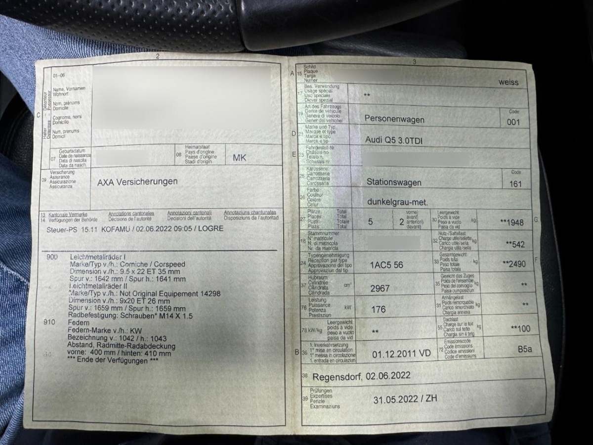 Teppichfussmatten vorne und hinten, Auspuffanlage mit 2 Endrohren (links und rechts), Zentralverriegelung mit Fernbedienung, CD-Laufwerk, Airbag: Airbag Fahrer und Beifahrer, Heckscheiben-Wisch-/Waschanlage, Aussentemperaturanzeige, Lackierung: Uni-Lackierung, Alu-Räder 8Jx17 im 6-Arm-Design, Antiblockiersystem (ABS), Lichtwarnsummer, Fahrer-Informationssystem, Doppelter Ladeboden mit darunter liegender Schmutzwanne, Fahrwerk: Dynamisches Fahrwerk, Leseleuchten hinten, Einstiegsleisten in Aluminium, Ladekantenschutz in Edelstahl, Klima: Pollenfilter (Staubfilter), Allradantrieb permanent, Beleuchtetes Handschuhfach, Mittelarmlehne hinten, Assist: Bremsassistent (BAS), Dekoreinlagen in Mikrometallic, Aschenbecher und Zigarettenanzünder, Leuchtweitenregulierung elektrisch, Partikelfilter und Oxydationskatalysator, Gepäcktrennnetz, Servotronic, Polster: Stoff-Ausstattung, Tageskilometerzähler, Xenon Plus-Lichtanlage inkl. LED Tagfahrlicht und LED Rückleuchten, Radio Chorus, Rücksitzlehne geteilt abklappbar, 4 Speichen-Lederlenkrad, Drehzahlmesser, Einstellbare Lendenwirbelstütze für den Fahrer und Beifahrer, Scheibenwischer vorne mit Intervall, Tempomat, Sitze: Vordersitze heizbar, Aussenspiegel rechts und links beheizbar und elektrisch verstellbar, Licht: Tagfahrlicht, Frontscheibe mit Wärmeschutzverglasung, Kofferraumwanne, Nebelscheinwerfer, Klimaautomatik Komfort, Raucherpaket, Kopfstützen hinten, Steckdose 12V, Wegfahrsperre elektronisch, Aussenspiegel in Wagenfarbe, Airbag: Window-Kopfairbags, Antriebsschlupfregelung (ASR), Befestigungsösen im Laderaum, Getönte Scheiben, Seitenairbag für Fahrer und Beifahrer, Scheinwerfer-Waschanlage, Elektronische Parkbremse, Seitenaufprall-Schutzsystem, Elektronische Differentialsperre (EDS), MMI basic, Laderaumabdeckung, Höhenverstellbare Gurten vorne, Innenlicht-Abschaltverzögerung, Heckscheibenheizung, Wassertemperaturanzeige, Elektronisches Stabilitäts-Programm (ESP), Licht: Nebelschlussleuchte, Licht: Drittes Bremslicht, Gurtstraffer vorne, Make up-Spiegel rechts, Cupholder vorne und hinten, Sitze: Vordersitze höhenverstellbar, Leseleuchten vorne, ISOFIX Kindersitzvorrichtung, Garantie: 2 Jahre ohne Kilometerbegrenzung (ab 1. Inv.), Lenkrad: Lenkrad längs- und höhenverstellbar, Sicherheitsgurte auf allen Plätzen, Notrad, Elektrische Fensterheber vorne + hinten, Fensterschachtzierleisten in Aluminium, Dachreling blank inkl. Querträger, Digital Uhr, Brillenablage, Licht: LED Heckleuchten, Leuchtweitenregulierung automatisch, Make up-Spiegel links, Sequentielles 7-Gang-Getriebe DSG mit Automatikfunktion