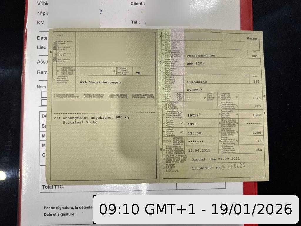 Make up-Spiegel rechts, Heckscheibenheizung, Kofferraumfernentriegelung, Bremsassistent (BAS), 3-Punkt-Sicherheitsgurte auf allen Plätzen, Skisack, Wegfahrsperre elektronisch, Window-Kopfairbags, Motor Start-/Stop-Anlage, Lenkung, elektrisch unterstützt, Bremsbelag-Verschleissanzeige, Digital Uhr, Tageskilometerzähler, 3 Kopfstützen hinten, Gurtstraffer vorne, Aussentemperaturanzeige, Assist: Cornering Brake Control (CBC), Verbandskasten, Abschliessbare Radschrauben, Aux-In Anschluss, Befestigungsösen im Laderaum, Dynamische Stabilitätskontrolle (DSC), Lenkrad: Lenkrad längs- und höhenverstellbar, Scheibenwischer vorne mit Intervall, Stossstangen und Aussenspiegel in Wagenfarbe, Gurtkontrolle, Zweiklanghorn, ISOFIX Kindersitzvorrichtung, Rücksitzlehne geteilt abklappbar, Anbauteile in Wagenfarbe, Blinkleuchten seitlich vorn weiss, Radzierblenden, Abblendlichtausschaltverzögerung ‘Follow me home’, Katalysator geregelt, Veloursfussmatten vorne und hinten, Radiovorbereitung, Antenne, Entstörung und 6 LS, Airbag: Airbag Fahrer und Beifahrer, Lichtwarnsummer, Einstiegsschienen, Lackierung: Uni-Lackierung, Vordersitze höhenverstellbar, Reifendruckverlust-Warnsystem, Stoff-Ausstattung, Antiblockiersystem (ABS), Innenlicht-Abschaltverzögerung, Halogenscheinwerfer, Durchladeklappe, Tagfahrlicht, Nichtraucherausführung, Bordcomputer, Leuchtweitenregulierung elektrisch, Aussenspiegel rechts und links elektrisch verstellbar, Grün getönte Scheiben, Weisse Blinkleuchten, Türgriffe in Wagenfarbe, Radio BMW Business CD, Heckscheiben-Wisch-/Waschanlage, Nebelscheinwerfer, Drittes Bremslicht, 12-Volt-Steckdose vorne, Licht: Nebelschlussleuchte, Elektrische Fensterheber vorne + hinten, Check-Control-System, Wartungsintervall-Anzeige, iDrive-System, Oelstandsanzeige, Schutzleisten für Stossstangen vorne und hinten, Dekor: Interieurleisten in Satinsilber matt, Stahlräder, Getriebe: 6-Gang-Getriebe, Seitenairbags, Make up-Spiegel links, Zentralverriegelung mit Fernbedienung, Beleuchtetes Handschuhfach, Automatische Stabilitäts- und Traktions- kontrolle, Kombi-Instrumente mit Chromzierringen, Seitenaufprall-Schutzsystem, Drehzahlmesser, BMW Mobility System