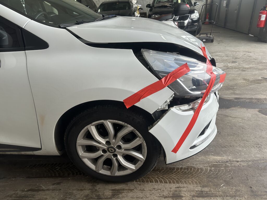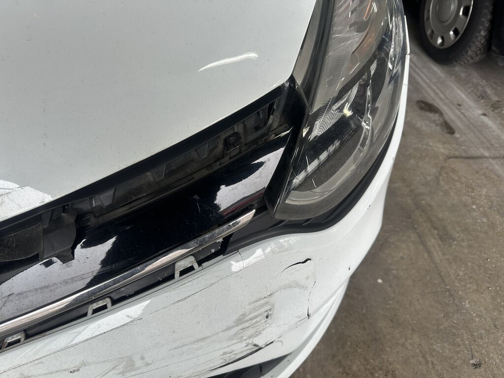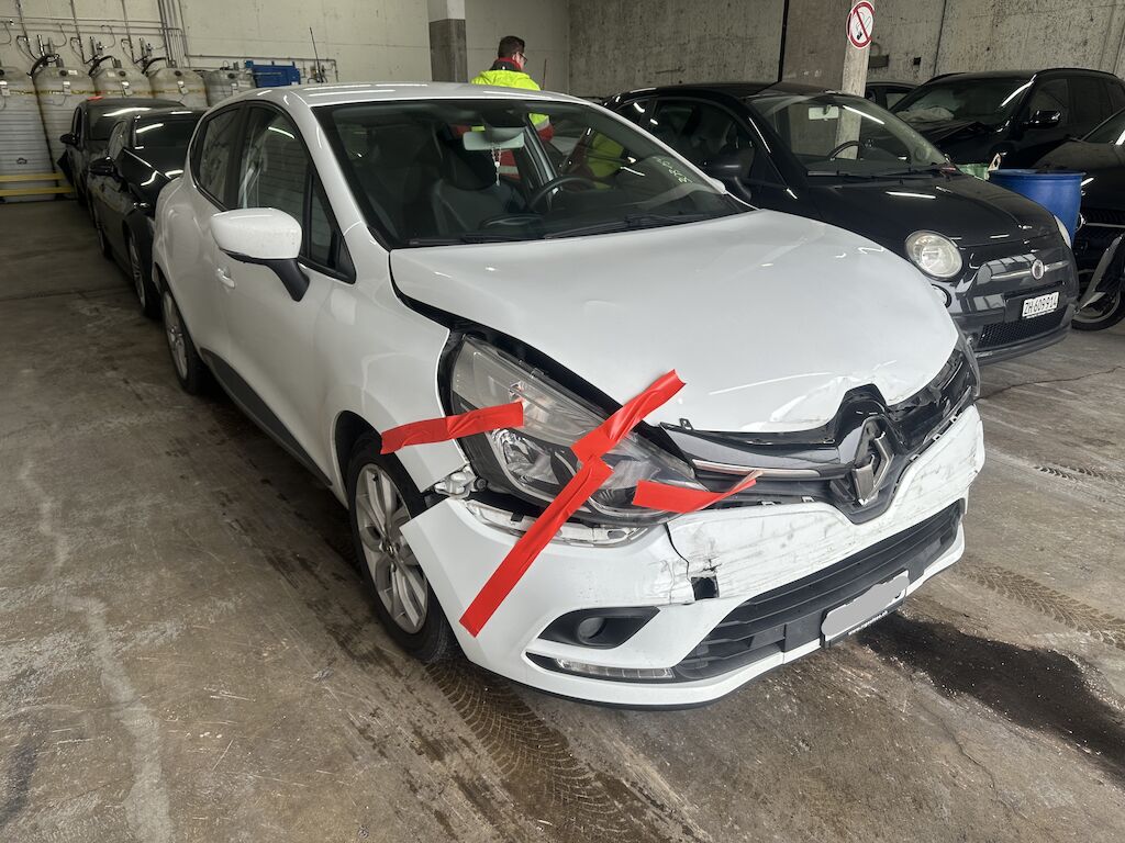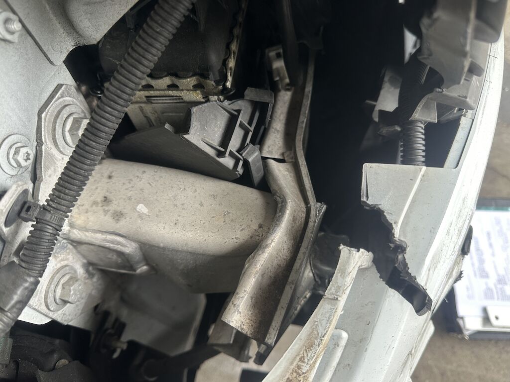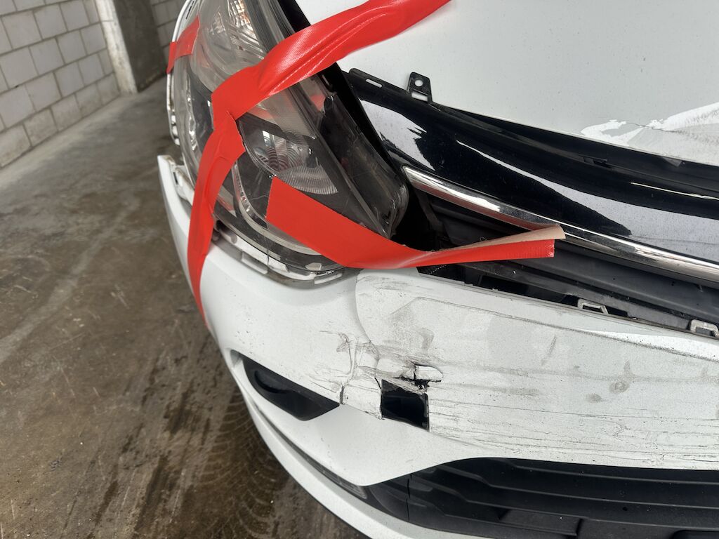 Anprall vorne. Dabei wurden die Stossstange, der Querträger, beide Scheinwerfer, der Frontrahmen, alle Kühler und diverse Bauteile im Anprallbereich beschädigt.