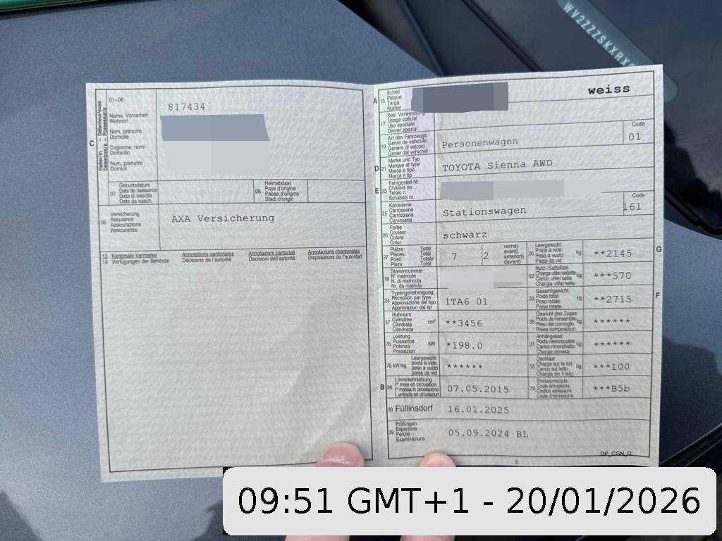 | Fahrzeugausweis | Vorhanden |