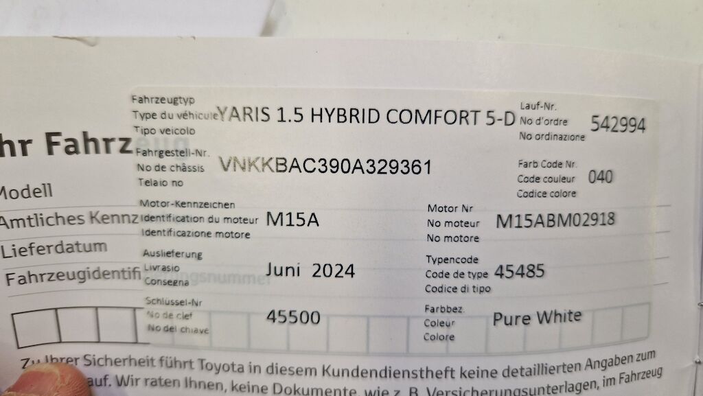 Toyota Yaris 1.5 Hybrid Comfort 5-D ID 458680 – REST