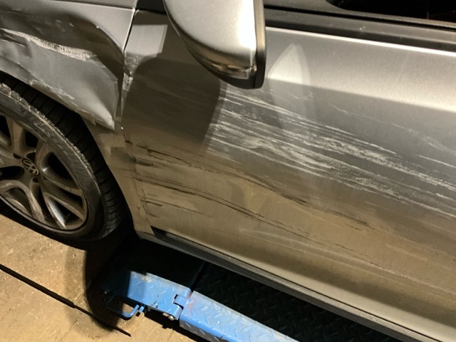 Links Linke Seite beschädigt. Anstoss links im Bereich der A-Säule. Heck Achse |