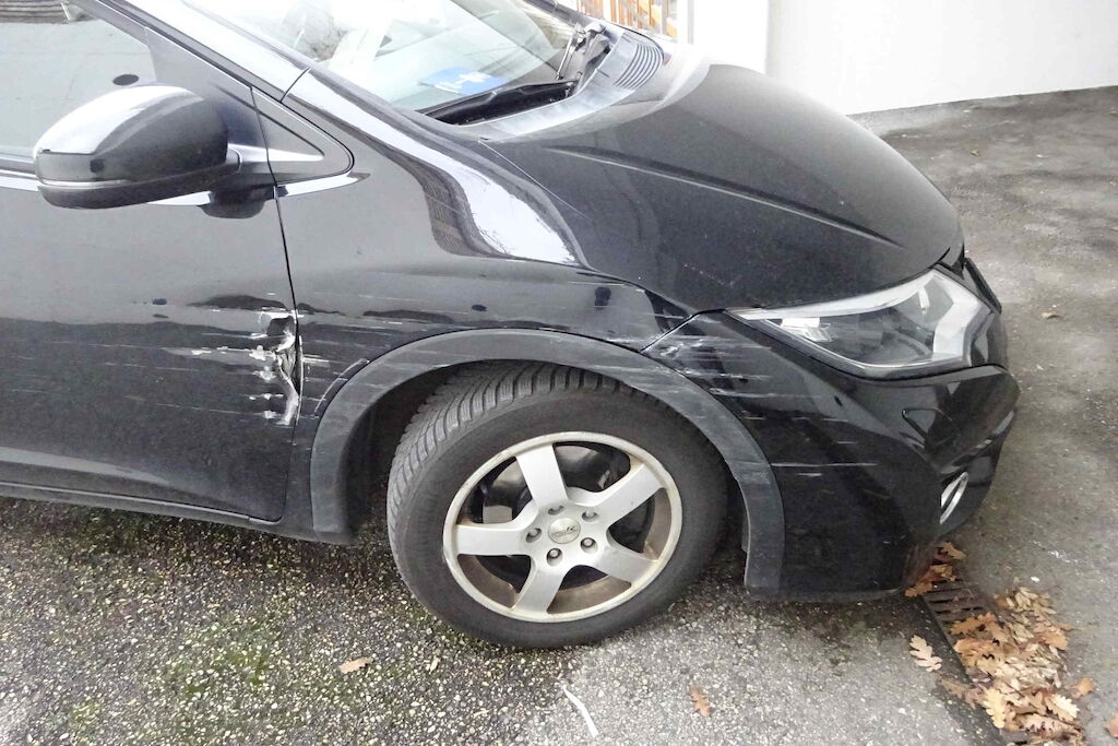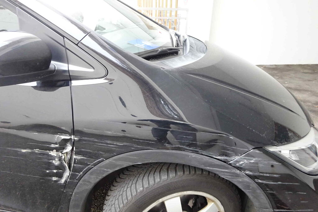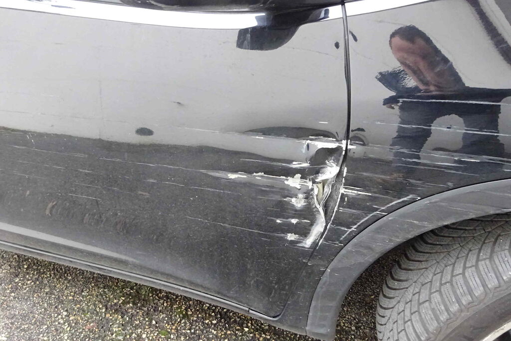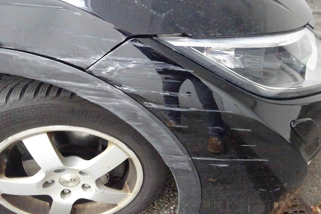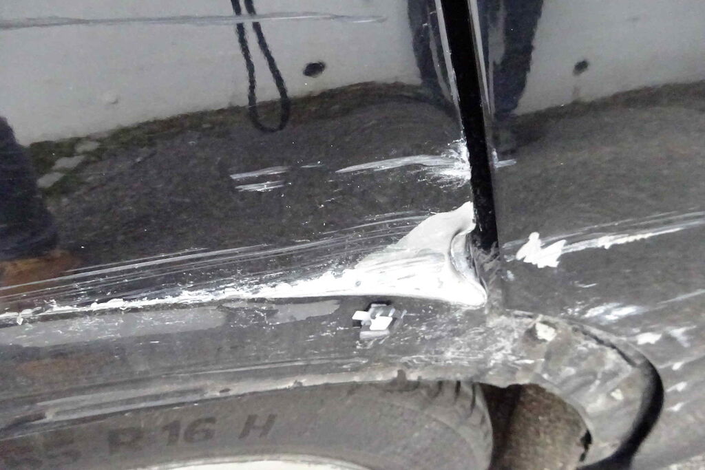 Pare-chocs, 2 ailes, 2 portes, moulures, élargisseur et jante endommagés
