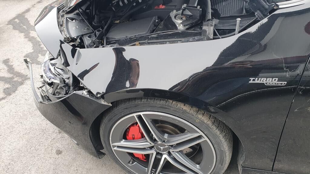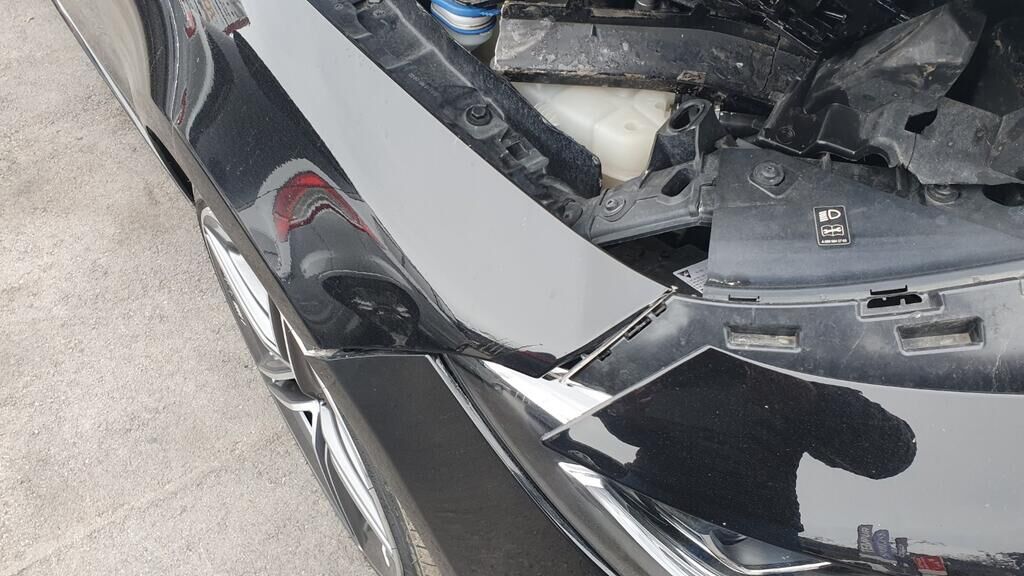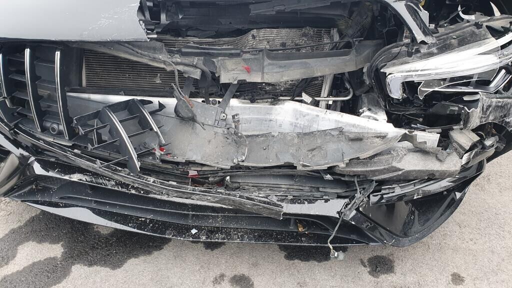 Face avant enfoncée, pare-chocs, renfort, radiateur, tôle frontale, aile avant, phares- capot moteur endommagé