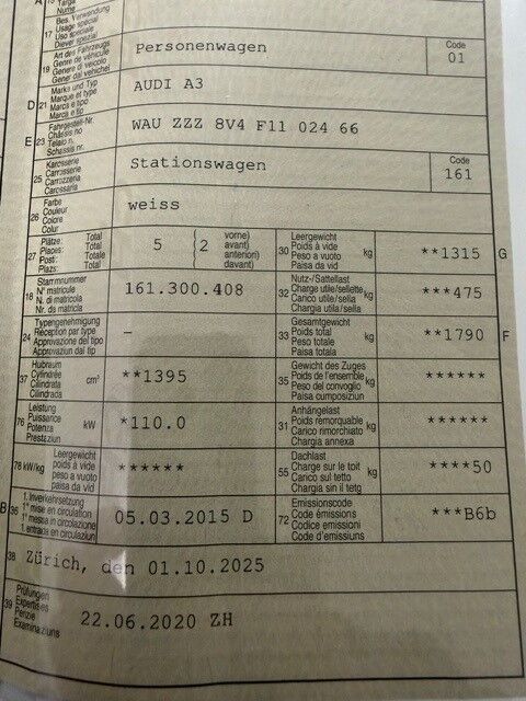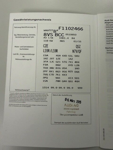 | Numero telaio | WAUZZZ8V4F1102466 |