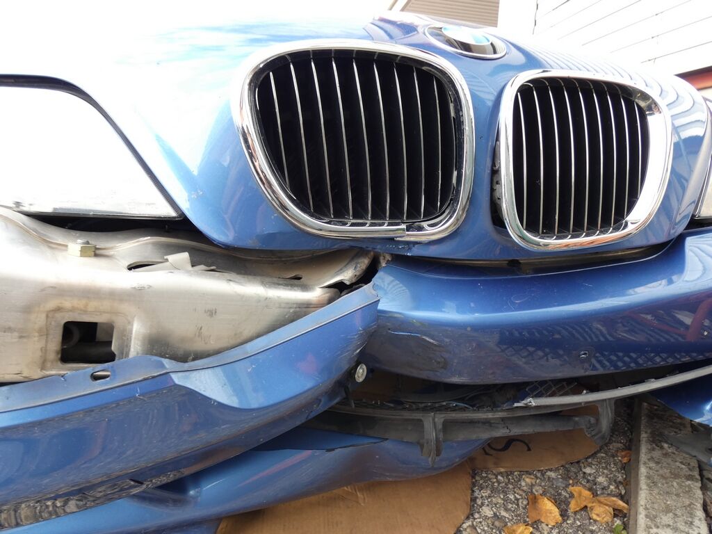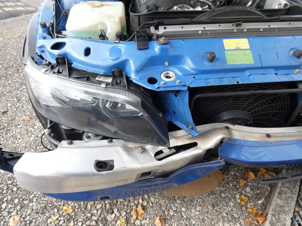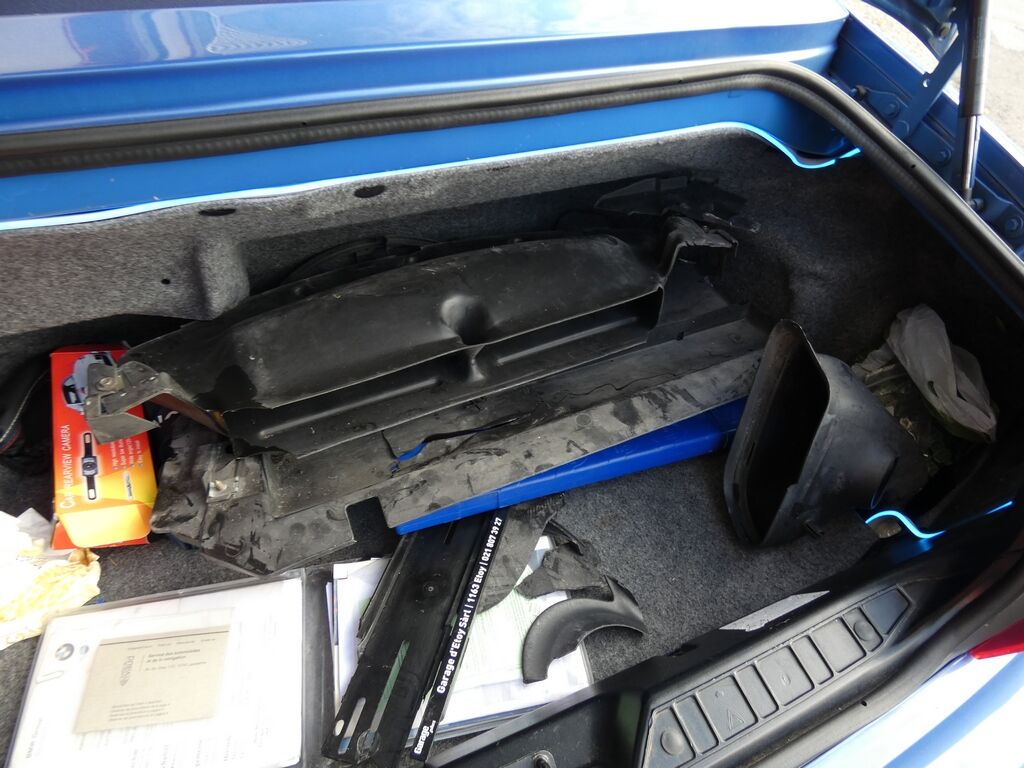 Choc avant et sous le véhicule, pare-chocs AV, face AV, radiateurs, mécanique de roue avant, crémaillère de direction assistée, longeron AVD, échappement