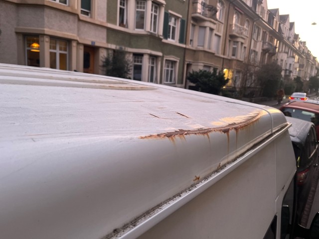 Links Linke Seite beschädigt. Rechts Dach Sonstige Schäden |