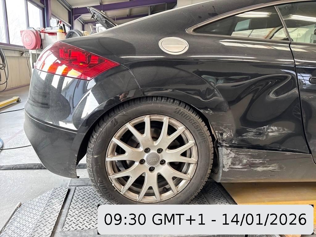 Antrieb, Armaturenbrett, Auspuffkollektor, Aussenspiegel links, Aussenspiegel rechts, Dach, Federbein vorne links, Federbein vorne rechts, Front, Front links, Front rechts, Frontscheibe, Getriebe, Heckdeckel, Heckscheibe, Hinterachse, Interieur, Kabelstrang, Klimakühler, Kofferraumboden, Kühlgitter, Ladeluftkühler, Lenkung, Längsträger vorne links, Längsträger vorne rechts, Motor, Motorgehäuse, Motorhaube, Motorträger, Rad hinten links, Rad vorne links, Rad vorne rechts, Radaufhängung vorne links, Radaufhängung vorne rechts, Radhaus vorne links, Radhaus vorne rechts, Rücklicht links, Rücklicht rechts, Scheinwerfer links, Scheinwerfer rechts, Stosstange vorne, Türe vorne links, Ölwanne