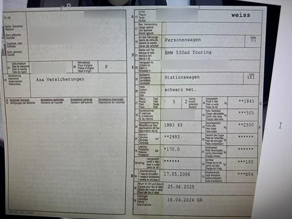 | Fahrzeugausweis | Vorhanden |