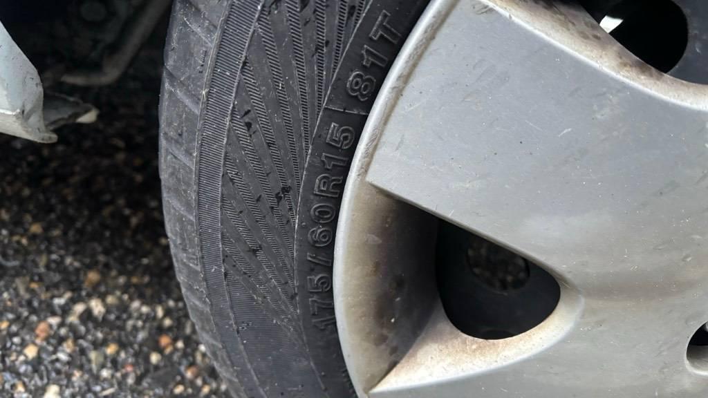 Diverse Gebrauchspuren, Diverse Gebrauchspuren, Heck links, Rad hinten links, Radhaus hinten links, Seite links, Seitenwand links, Stossstange hinten