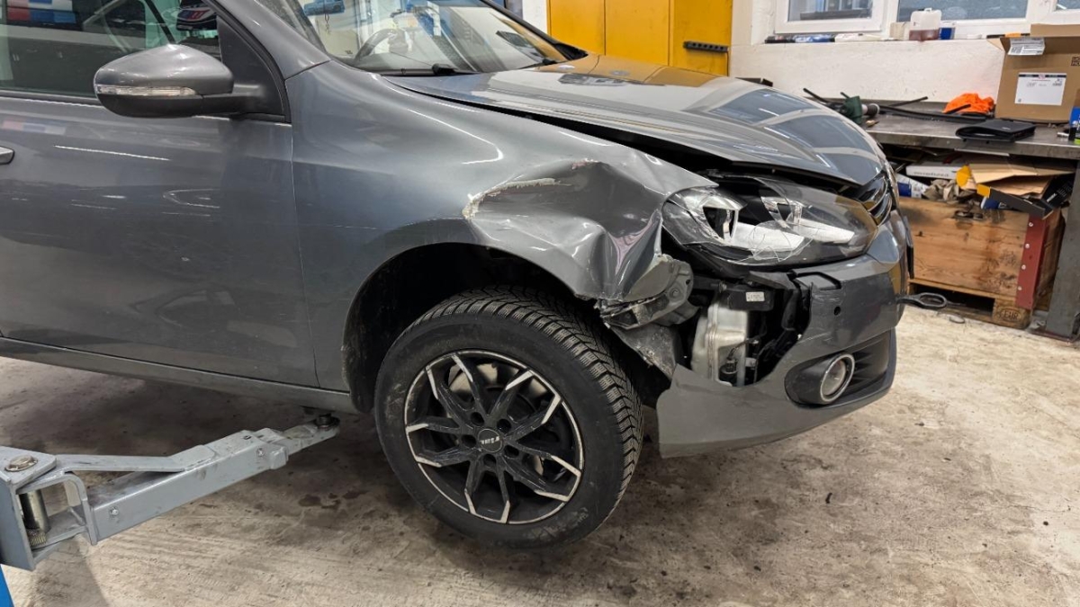 Federbein vorne rechts, Front, Front rechts, Frontblech, Kotflügel rechts, Kühlgitter, Lenkung, Rad vorne rechts, Radaufhängung vorne rechts, Radhaus vorne rechts, Scheinwerfer rechts, Schlossträger, Stosstange vorne, Vorderachse