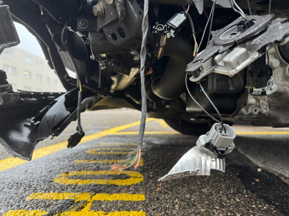 Airbag ausgelöst, Diverse Anbauteile, Diverse Gebrauchspuren, Front, Front links, Front rechts, Frontblech, Frontscheibe, Gurtstraffer ausgelöst, Interieur verschmutzt, Klimakühler, Kotflügel links, Kühler, Kühlgitter, Ladeluftkühler, Lenkung, Querträger, Rad vorne links, Radaufhängung vorne links, Radhaus vorne links, Scheinwerfer links, Schlossträger, Stosstange vorne, Türe vorne links
