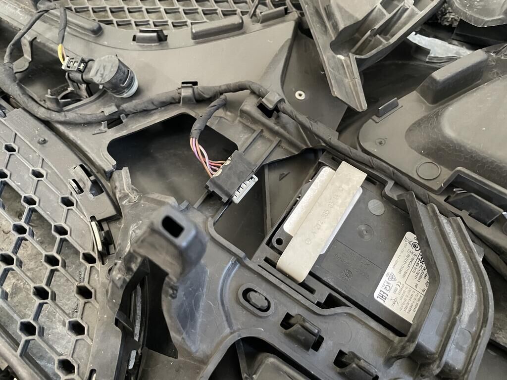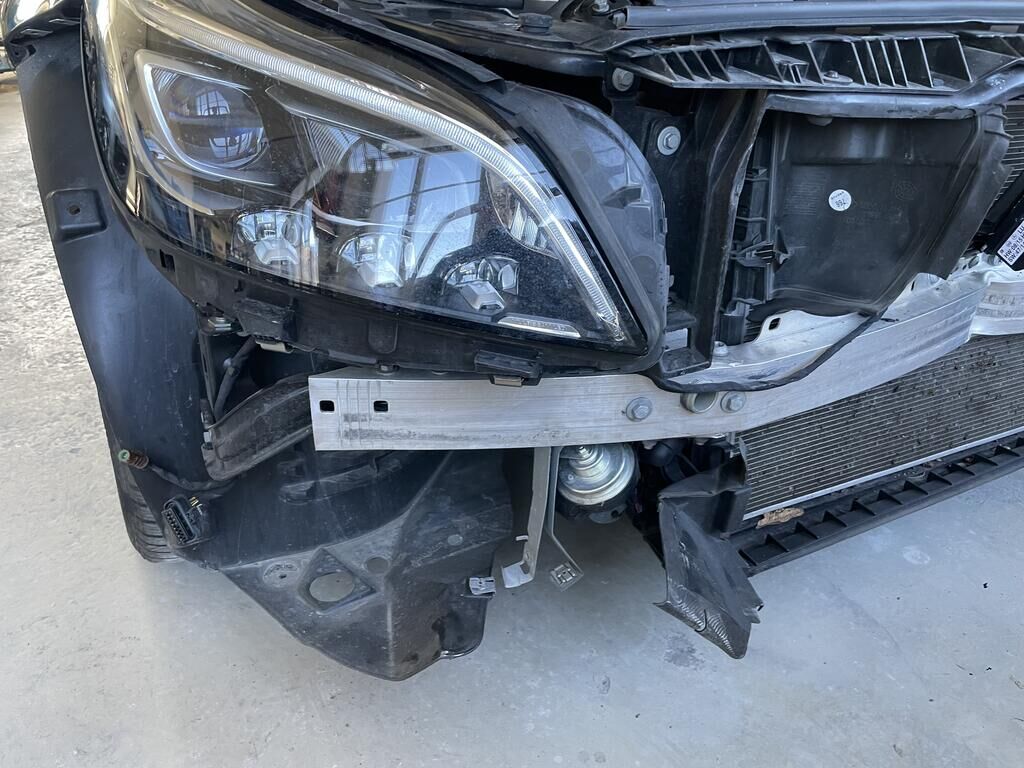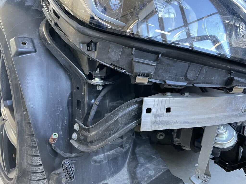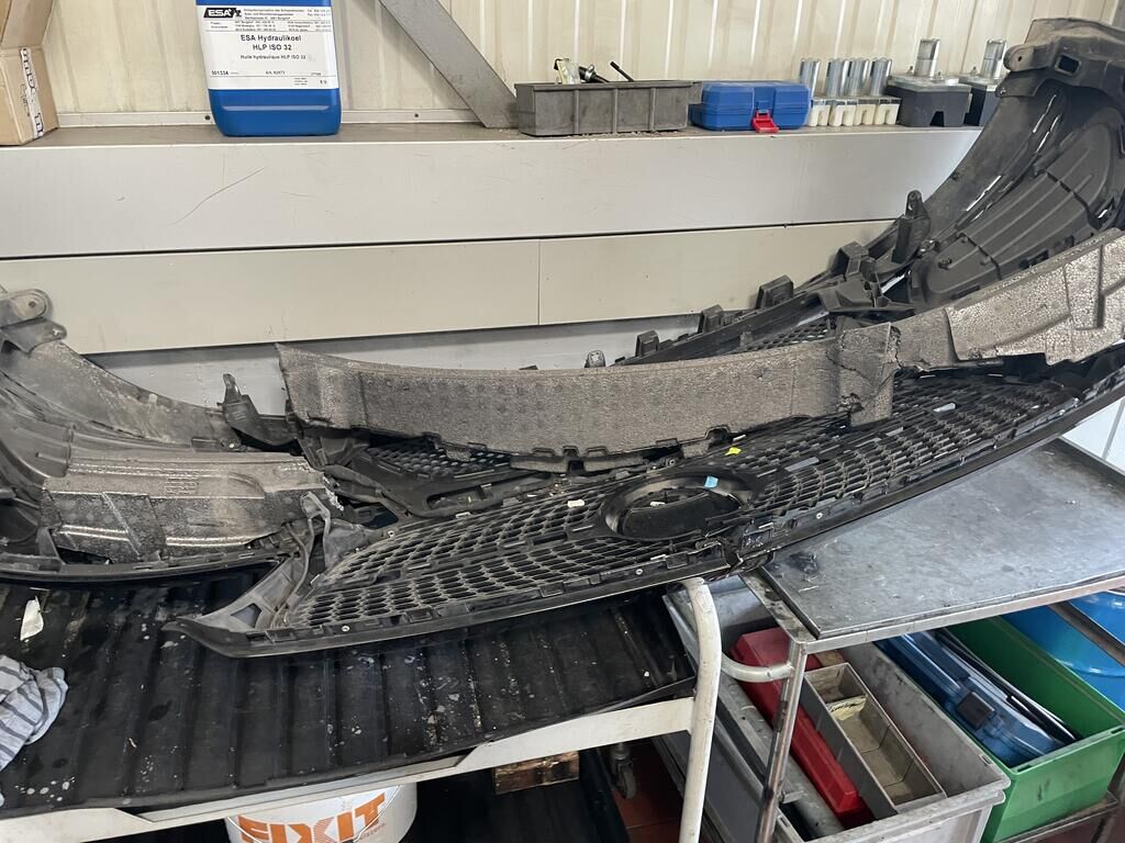 Motorhaube und Scharniere def. / Kotflügel li und re def. / Scheinwerfer li und re def. / Schlossträger def. / Stossf mit Anbauteilen def. / Totwinkelsensor def. / Kühlergrill def. / Alle Kühler def. / A-Säule re def. / Halter vom Frontradar def. (Radar= Risoko) / Aufzählung nicht abschliessend.