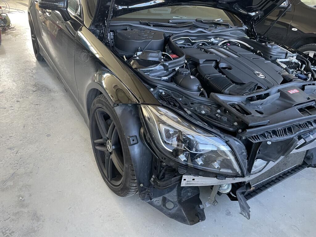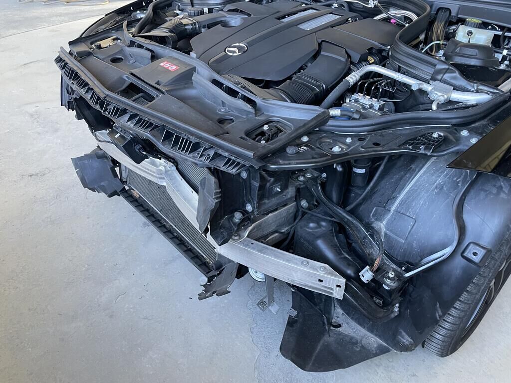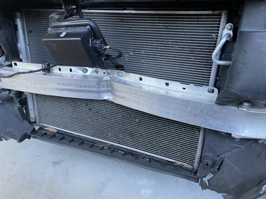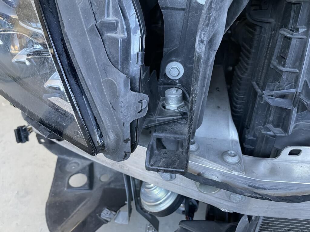 Motorhaube und Scharniere def. / Kotflügel li und re def. / Scheinwerfer li und re def. / Schlossträger def. / Stossf mit Anbauteilen def. / Totwinkelsensor def. / Kühlergrill def. / Alle Kühler def. / A-Säule re def. / Halter vom Frontradar def. (Radar= Risoko) / Aufzählung nicht abschliessend.