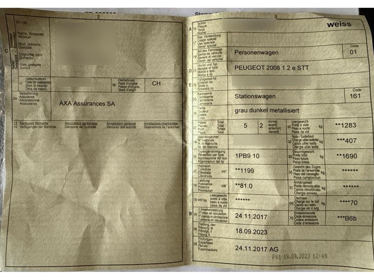 | Fahrzeugausweis | Vorhanden |