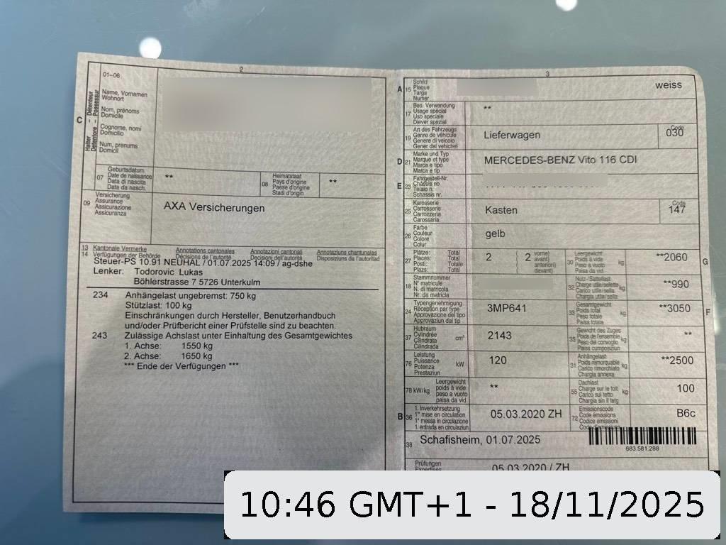 | Fahrzeugausweis | Vorhanden |