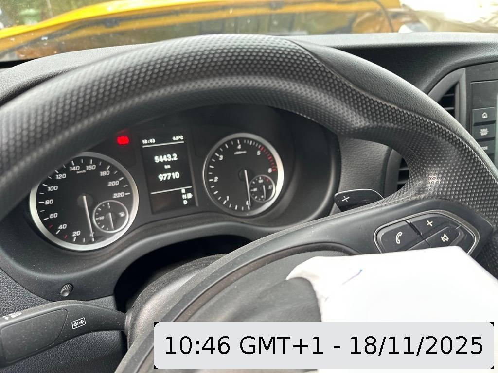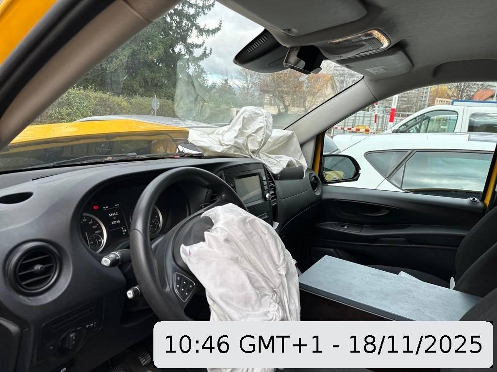 Assist: Pannenmanagement, 12V Steckdose, Assist: Seitenwindassistent, Wegfahrsperre elektronisch, Assist: Wartungsintervallanzeige ASSYST, Emissionsklasse Euro 6d-TEMP N1 GR.III/N2, Abschliessbares Handschuhfach, Polster: Polster Stoff Caluma schwarz, Airbag: Airbag Fahrerseite, Getriebe: Achsübersetzung i = 2,733, Generatormanagement, Sitze: Fahrersitz Manuell in 6 Richtungen einstellbar für hohen Sitzkomfort., Assist: Reifendrucküberwachung an VA u. HA, drahtlos, Befestigungspunkte im Dachrahmen, Airbag: Airbag Beifahrer, Multi-Tasten Funkfernbedienung, Elektronisches Stabilitäts-Programm (ESP), Assist: Tempomat, Aussentemperaturanzeige, Zuheizer elektrisch, Getriebe: 7G-TRONIC PLUS, Assist: Warnlampe für Wischwasserfüllstand, Elektrik für Anhängersteckdose, Pufferbatterie für Startvorgang, Gewichtsvariante 3.050 kg, Antriebsschlupfregelung (ASR), Türen: Schiebetür rechts, Wärmedämmendes Glas rundum, Sitze: Beifahrersitz verstellbar Manuell in 4 Richtungen einstellbar für hohen Sitzkomfort., Verbandstasche, Licht: Scheinwerfer Halogen, Media: 2-Wege-Lautsprecher vorn, Warndreieck, Räder: Stahlräder 6,5Jx16, Antiblockiersystem (ABS), Gurtwarneinrichtung für Beifahrersitz, Media: Kombiinstrument mit Pixel-Matrix-Display, Räder: Bereifung 205/65 R16, Media: Radiogeneration 2, Bereifung ohne Vorgabe Fabrikat, Zentralverriegelung mit Funk-Fernbedienung, Media: Digitaler Radioempfang (DAB/DAB+), Anhängelast 2500 kg, Licht: Fahrlichtassistent (automatisches Fahrlicht), Trennwand durchgehend, Garantie: Garantie: 2 Jahre, Assist: Berganfahrhilfe, Assist: Mercedes-Benz Notrufsystem, Feststellbremse (Fusspedal), Regensensor, Fahrwerk: Basisfahrwerk, Dekor:Innenverkleidung Laderaum, seitlich, Generator 14 V / 185 A, Media: Kommunikationsmodul (LTE) für digitale Dienste, Abschleppöse vorne/hinten einschraubbar, Lenkrad: Lenkrad in Neigung und Höhe verstellbar, Licht: Adaptives Bremslicht, Abgasreinigung SCR Generation 3, Licht: 3. Bremsleuchte, Fahrwerk: Elektrische Lenkung, Drehzahlmesser elektronisch, Getriebe: Partikelfilter und Oxydationskatalysator, Türen: Heckklappe, Sommerreifen, Assist: Wartungsintervall 40.000 km, Fahrwerk: Scheibenbremse an VA und HA, ECO Start-Stopp-Funktion, Assist: ATTENTION ASSIST, Licht: Leuchtweitenregulierung, Lenkrad: Multifunktionslenkrad mit Reiserechner, Media: Audio 10 Mit dem Audio 10 können Sie viel mehr als Radio hören – zum Beispiel über die Freisprechfunktion telefonieren oder Musik von einem mobilen Endgerät abspielen. Dazu verfügt das 1-DIN-Gerät über eine Bluetooth® Schnittstelle und einen USB-C-Anschluss mit Ladefunktion., Zwei Cupholder, Komfort Fensterheber elektrisch F/BF, Haupttank 70 Liter, Dieselpartikelfilter, Paket: BlueEFFICIENCY-Paket Das BlueEFFICIENCY Paket verbessert durch verschiedene Effizienzmaßnahmen die Verbrauchswerte und den CO2-Ausstoß. Verbrauchsreduzierende Maßnahmen – effektiv kombiniert., Aussenspiegel heizbar und elektrisch verstellbar, Gurtwarneinrichtung für Fahrersitz, Lackierung: Uni-Lackierung, Vliesbatterie 12 V/92 Ah