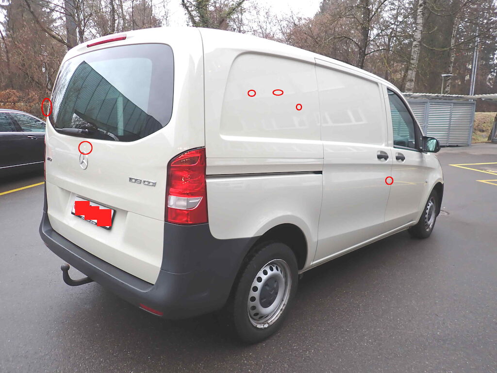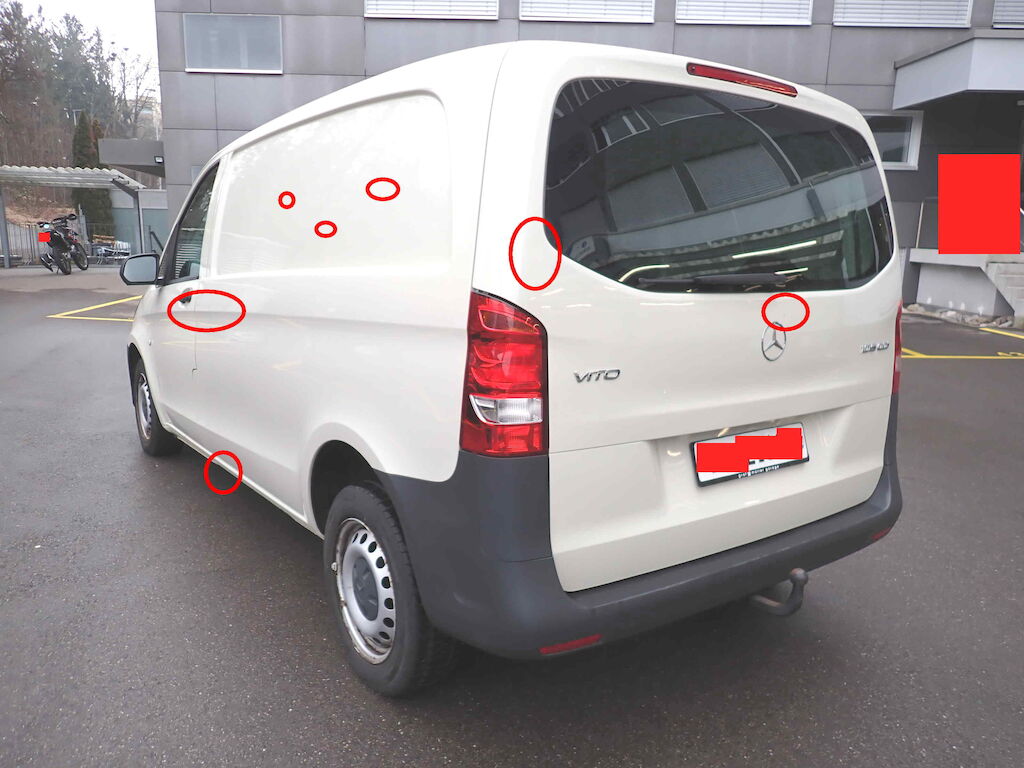 Wieder aufgefundenes Diebstahlfahrzeug. Anzahl Schlüssel: 1x FB / Fz-Ausweis: vorhanden / Bordmappe+Serviceheft: vorhanden (letzter Service am 01.02.24 bei 128472km/ Km-Stand: original / VIN: original / Lenk- Zündschloss: ok / Winterreifen: Vo+Hi: 195/65R16C (30%). Schäden: beide Scheinwerfer vorne undicht, VR evtl. gebrochen // Schweller links eingedrückt // Leichte Beulen im Dach und Seitenwänden // Lackschäden: Seitenwand links, Heckklappe, Türe VR // Rückspiegelkappe rechts fehlt // Kotflügel VR eingedrückt // Stossfänger VL angefahren // Delle Heckklappe // Innenraum schmutzig // Probefahrt: Soweit ok, Motor läuft gut. Fz zieht leicht nach rechts, 3. Gang kratzt. Die hier gemachten Angaben sind unverbindliche Beschreibungen. Sie stellen keine zugesicherten Eigenschaften dar. Der Verkäufer haftet nicht für Irrtümer, Eingabefehler und Datenübermittlungsfehler.