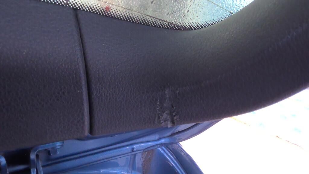 Es hat noch eine Delle mit Kratzer auf dem Dach (Vorschaden)