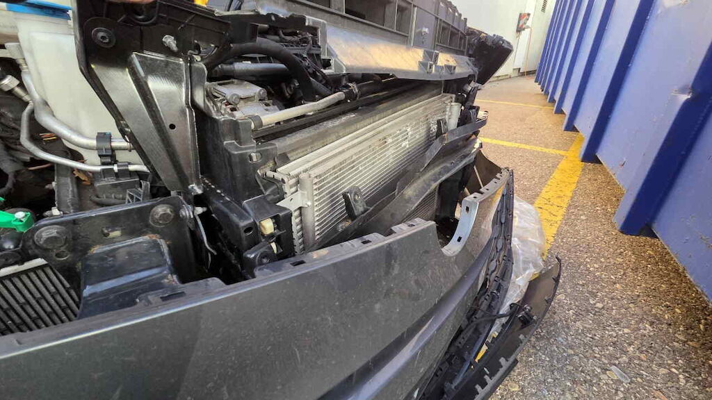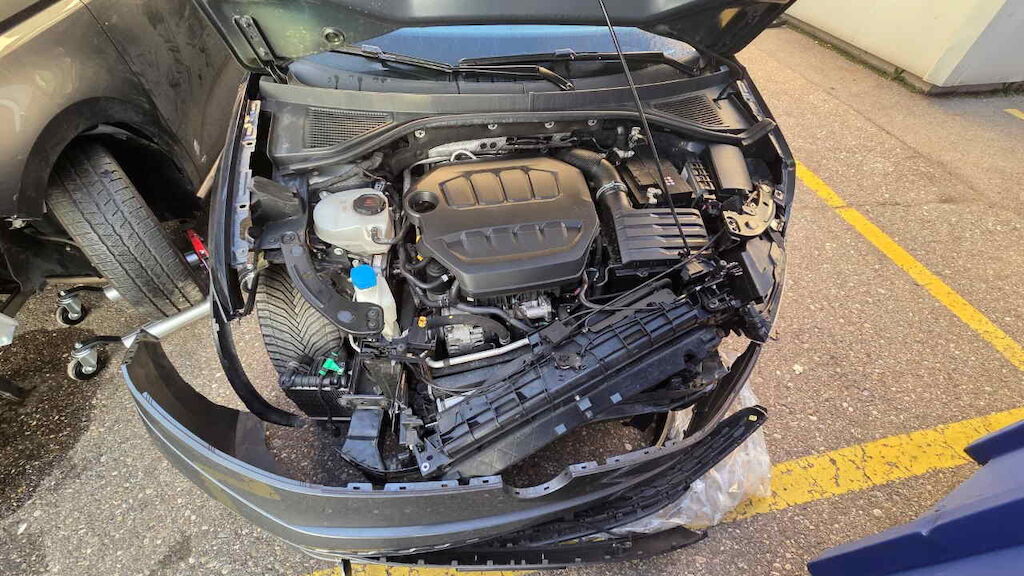 Stossfänger mit Träger und Halter, Kühlergrill, Lampen, Scheinwerfer, Motorhaube, Schlossträger, Kühlerpaket, Kotflügel und Türen vl und vr beschädigt