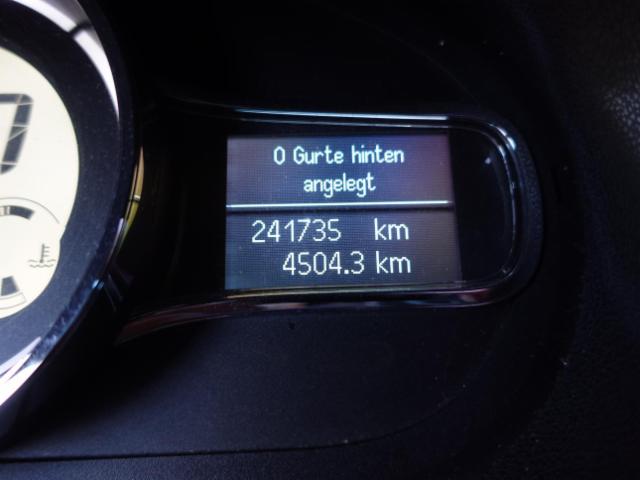 Serienaustattung Klimaanlage Airbag Fahrer und Beifahrerseite Elektronische Wegfahrsperre Zentralverriegelung Elektrische Fensterheber vorne + hinten Aussenspiegel elektrisch verstellbar und heizbar Bordcomputer Seitenairbag Fahrer und Beifahrerseite Nebelscheinwerfer Höhenverstellbarer Fahrersitz manuell Geteilte Rücksitzlehne 1/3, 2/3 Lenkrad verstellbar ABS und EBV Elektr. Bremskraftverteilung Lederlenkrad mit Lederschaltknauf Deaktivierung Beifahrerairbag Lendenwirbelstütze Fahrersitz Bremsassistent EBA Isofix-Kindersitzbefestigung Windowbags vorne + hinten ESP/ ASR/ CSV Tempomat mit Geschwindigkeitsbegrenzer Regen- und Lichtsensor Elektrische variable Servolenkung Reifen-Pannenset Show-me-home Lichtfunktion Renault Chipkarte Keyless LED Tagfahrlicht Aussenspiegel elektrisch einklappbar Leichtmetallfelgen 17″ schwarz Radio/ CD/ MP3/ Bluetooth/ Bose Navigationssystem TomTom mit Europakarte Keine Gewähr auf die Angaben der Serienausstattungen Sonderausstattung |
