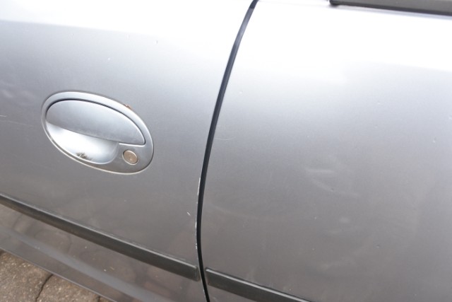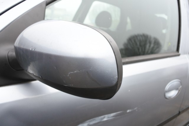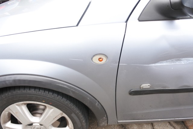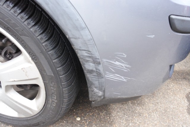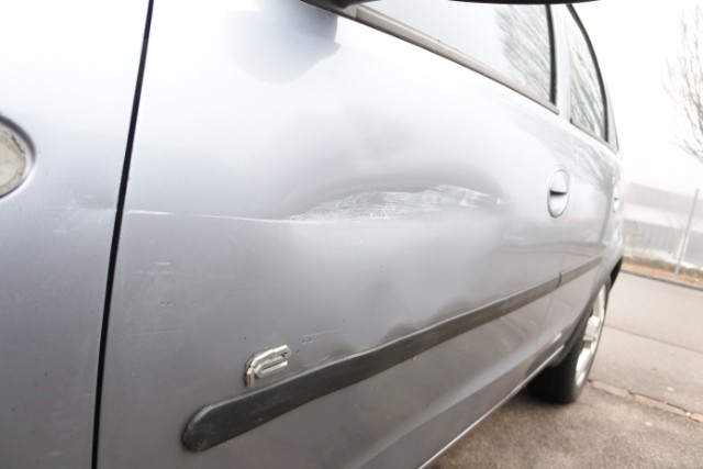 Der Kotflügel, die Fahrertür mit Rückspiegel und Türgriff sind beschädigt.