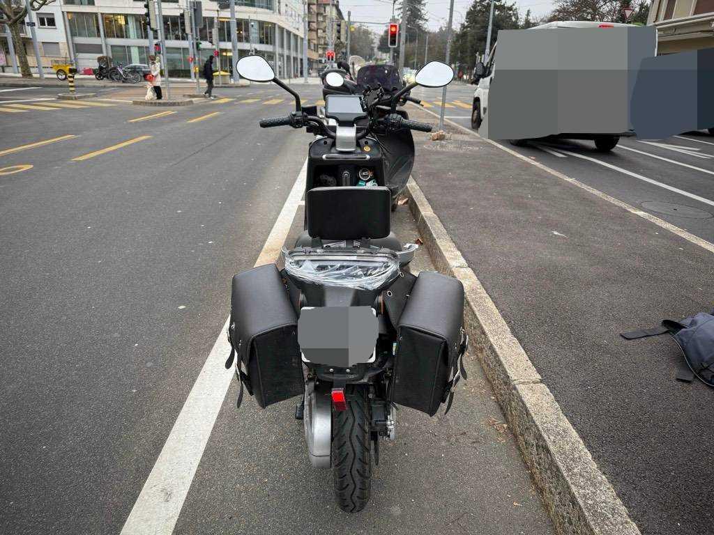 Aussenspiegel rechts, Fussraster rechts, Gabelholm, Griff rechts, Heck, Heckverkleidung, Rad hinten, Rücklicht, Rücklicht links, Rücklicht rechts, Schutzblech vorne, Seite rechts, Topcase, Verschalungen hinten, Verschalungen vorne