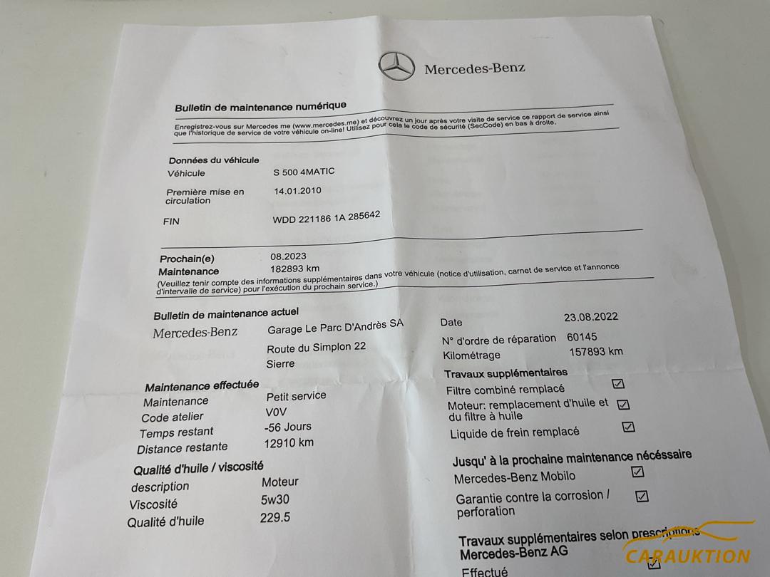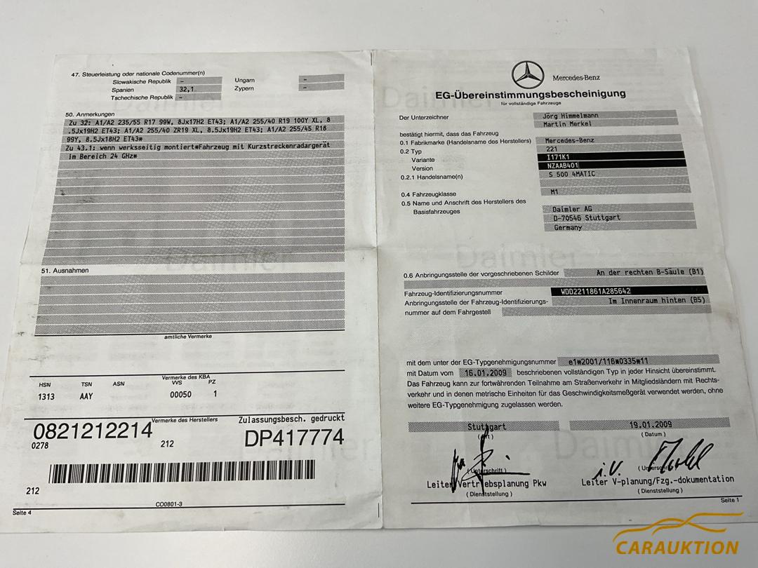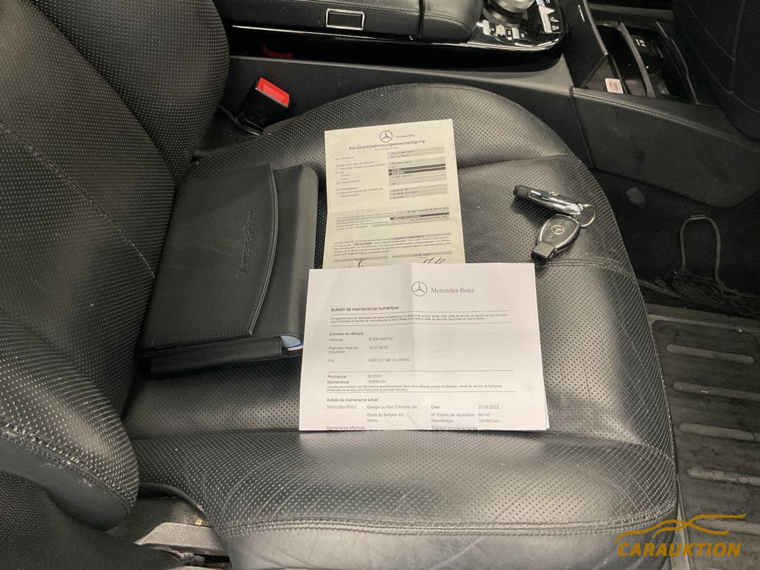 Gepäcknetz im Beifahrerfussraum, Lenkrad:Multifunktionslenkrad mit Schaltwippen, NECK-PRO Kopfstützen vorne, Wegfahrsperre elektronisch, Räder:Reifenreparatur-Set mit Kompressor, Seitenairbags vorne und hinten, Airbag: Window-Kopfairbags, Schliesshilfe für Heckklappe, Klimatisierungsautomatik, Licht: Nebelschlussleuchte, Regensensor für Scheibenwischer vorne, Wärme- und geräuschdämmendes sowie Infrarot reflektierendes Verbundglas rundum, Holzapplikationen Calyptus Linea, Leseleuchten hinten, Sitze: Vordersitze elektrisch verstellbar mit Memory, Reifendruckverlust-Warnsystem, Heckscheibenheizung, Innen- und Aussenspiegel automatisch abblendend, COMAND APS Radionavigationssystem mit DVD-Player, MP3 und Farbdisplay, PCMCIA-Slot, Türgriffe aussen in Wagenfarbe, Assist:ADAPTIVE BRAKE mit HOLD-Funktion und Berganfahrhilfe, Zentralverriegelung mit Fernbedienung, Lenkradeinstellung automatisch bei Ein- und Ausstieg, Gurtstatusanzeige für Fondsitze, Drehzahlmesser, Airbag: Knie-Airbag für Fahrer, Aux-In Anschluss (im Handschuhfach) für externe Audiogeräte, AIRMATIC Luftfederung mit elektronisch geregeltem Dämpfungssystem, Kofferraumfernentriegelung, Wassertemperaturanzeige, Sitze: 3-Punkt-Sicherheitsgurte auf allen Plätzen, Höhenverstellbare Gurten vorne + hinten, Lichtwarnsummer, Lackierung: Metallic-Lackierung, Analog-Uhr, Niveauregulierung hinten und vorne, Steckdose, Mittelarmlehne vorne klappbar, Elektronisches Stabilitäts-Programm (ESP), 7-Stufen-Automat 7G-TRONIC, Kreuzstützen für Vordersitze elektrisch verstellbar, Abbiegelicht, Leuchtweitenregulierung automatisch, Airbag: Airbag Fahrer und Beifahrer, Rücksitzbank elektrisch verstellbar, Scheibenwischer vorne mit Intervall, Sitze: Armlehne vorne mit Ablagefach, Aussentemperaturanzeige, Licht:Adaptives Bremslicht, Scheibenwaschdüsen beheizt, Sitze:Gurtstraffer vorne, Licht: Drittes Bremslicht, Bi-Xenon-Scheinwerfer mit aktivem Kurvenlicht und Scheinwerfer- Reinigungsanlage, Licht:Fahrlichtautomatik, Assist:Tempomat, Make up-Spiegel hinten beleuchtet, Steckdose im Kofferraum, Parameterlenkung, Tageskilometerzähler, Brillenablage, Verbandskasten, PRE-SAFE Sicherheitssystem, Aschenbecher und Zigarrenanzünder im Fond links und rechts beleuchtet, Antiblockiersystem (ABS), Seitenaufprall-Schutzsystem, Nichtraucherausführung, Katalysator geregelt, Räder:Leichtmetallräder im 5-Speichen-Design 17J, VA: 7,5Jx17 / HA: 8,5Jx17, Ablagefach in Armlehne hinten, Elektrische Fensterheber vorne + hinten, Abblendlichtausschaltverzögerung ‘Follow me home’, Getönte Scheiben, Kopfstützen hinten abklappbar, Allradantrieb permanent, Aussenspiegel rechts und links beheizt, elektrisch verstell-/ und einklappbar mit Memory, automatisch abblendend, Antriebsschlupfregelung (ASR), Gepäcknetz im Laderaum seitlich, Elektronische Parkbremse, Fondbedienung für Beifahrersitzeinstellung, Licht:Nebelscheinwerfer, Vorder- und Rücksitze heizbar, Fussraumbeleuchtung vorne und hinten, Reiserechner, Beide Make up-Spiegel beleuchtet, Bremsbelagverschleiss, Elektrisches Glasschiebe- / Hebedach, Wartungsintervall-Anzeige, Leseleuchten vorne, Kartentaschen an den Rückenlehnen, Lenksäule elektrisch einstellbar mit Memory, Sonnenschutzrollo für Heckscheibe elektrisch, Polster:Leder-Ausstattung, Bremsassistent (BAS), Stossstangen und Aussenspiegel in Wagenfarbe