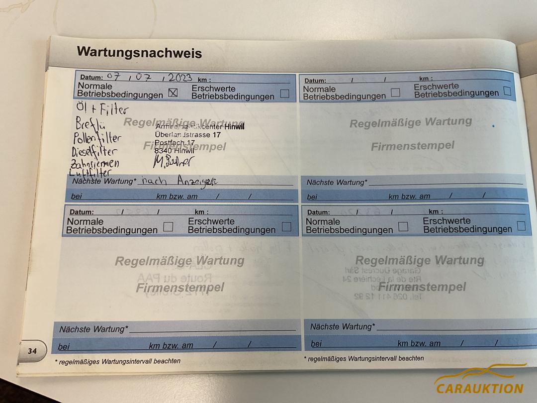 Dieselpartikelfilter, Kindersitzverankerung ISOFIX hinten, Keine Gewähr auf die Angaben der Serienausstattungen, Bordcomputer, Kopfairbag vorne und hinten, Follow-me-home Lichtfunktion, Seitenairbag Fahrer und Beifahrerseite, ESP/ ASR, Elektrische Fensterheber vorne, Höhenverstellbarer Fahrersitz, Klimaanlage manuell, Rücksitzlehne geteilt 1/3 oder 2/3 / umklappbar, Airbag Fahrer und Beifahrerseite, Aussenspiegel in Wagenfarbe elektr. verstellbar und heizbar, Dachreling schwarz, Zentralverriegelung mit Fernbedienung, Stop + Start System, Garantie Plus 3 Jahre/ 100’000 km, Servolenkung geschwindigkeitsabhängig, LED Tagfahrlicht, ABS und EBV Elektr. Bremskraftverteilung, Tempomat mit Geschwindigkeitsbegrenzer, Lenkrad verstellbar, Deaktivierung Beifahrerairbag, Nebelscheinwerfer, Not-Bremsassistent mit Aktivierung der Warnblinkanlage