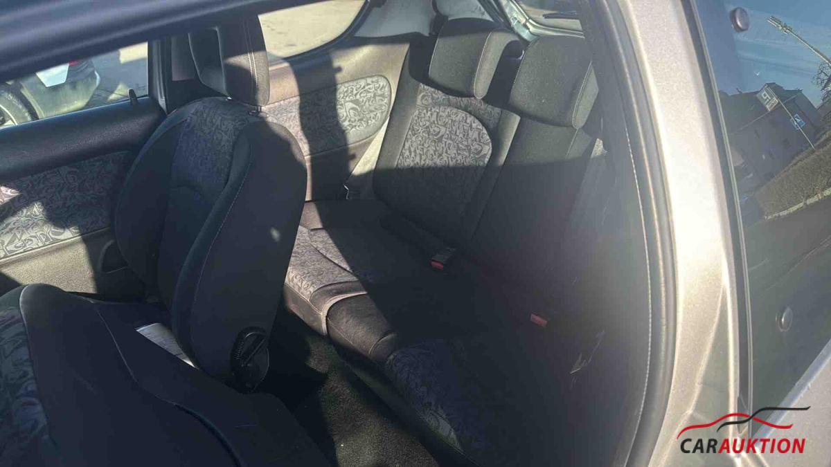 Airbag Fahrer-/Beifahrerseite, Anti-Blockier-System (ABS), Anzeige Motorölstand, Audiosystem RD 3 (Radio/CD-Player), Ausstellfenster hinten, Außenspiegel elektr. verstell- und heizbar, Außentemperaturanzeige, Blinkleuchten seitlich, Bordcomputer, Drehzahlmesser, Elektron. Stabilitäts-Programm (ESP, Bosch), Fensterheber elektr. vorn, links mit Impulsgeber, Getriebe 5-Gang, Gurtstraffer, Karosserie: 3-türig, Kopf-Airbag-System, Lenkrad (Leder), LM-Felgen, Metallic-Lackierung, Motor 1,6 Ltr. – 80 kW 16V KAT (NFU / TU5JP4), Nebelscheinwerfer, Reserverad als Notrad, Rücksitz geteilt / klappbar, Schutzleisten, Seitenairbag vorn (doppelt), Seitenschutzleisten lackiert, Servolenkung, Sitz vorn links höhenverstellbar, Sitzbezug / Polsterung: Stoff, Sportsitze vorn, Stoßfänger Wagenfarbe, Verglasung getönt, Wegfahrsperre, Zentralverriegelung mit Fernbedienung