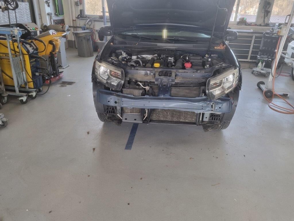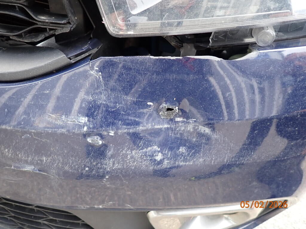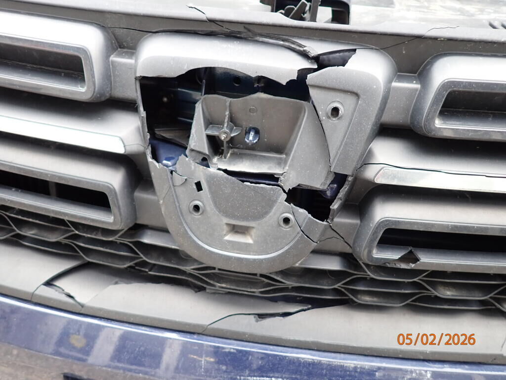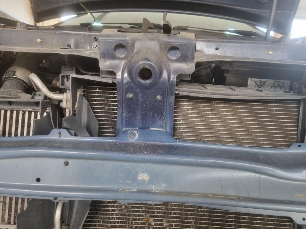 Pare-chocs avant, calandre, capot, phare cassé, aile avant pliée, renfort, tôle frontale, radiateur