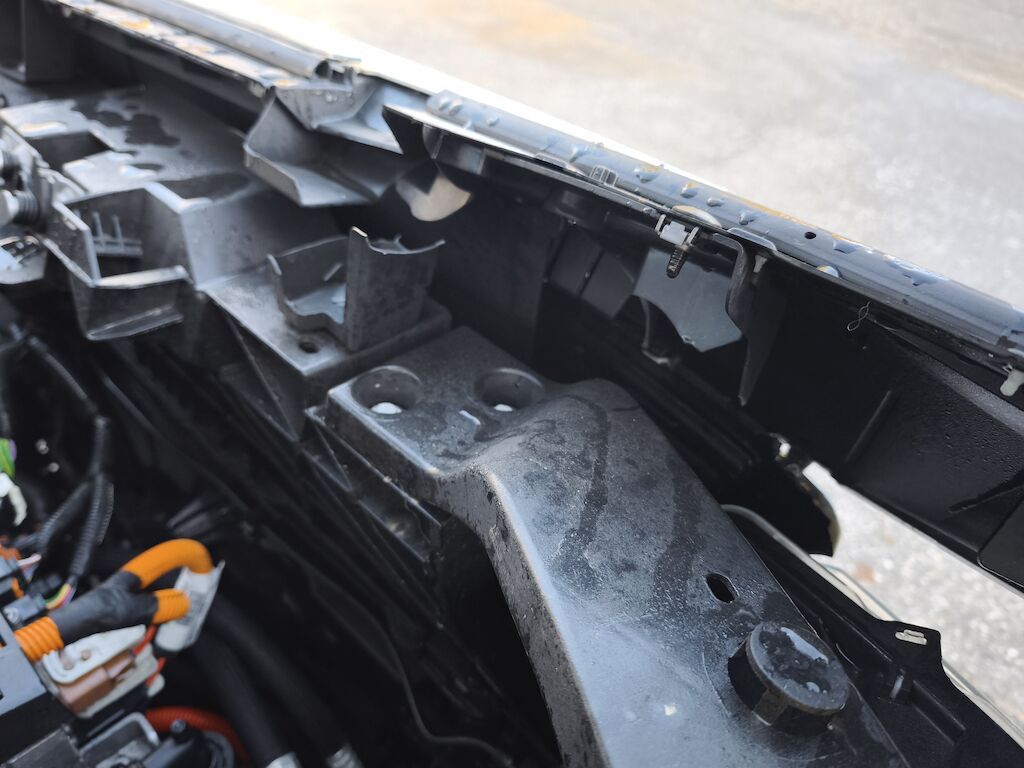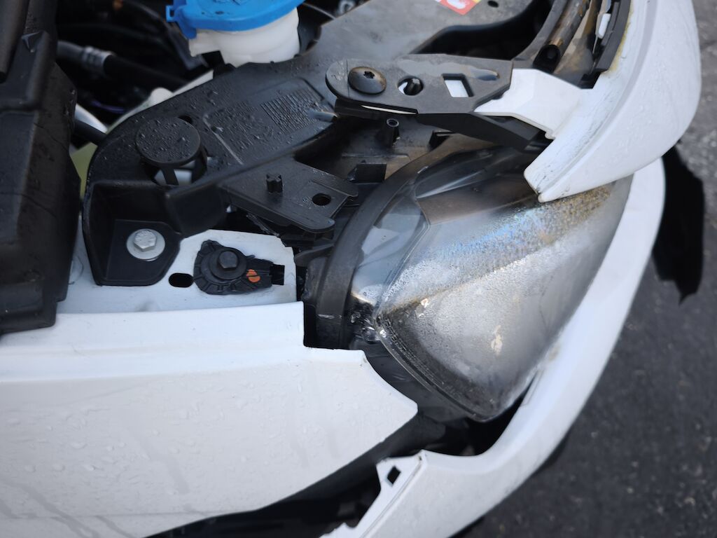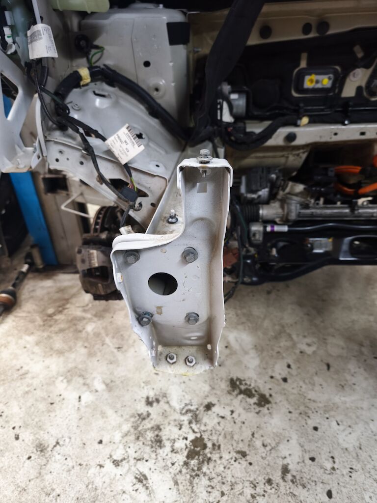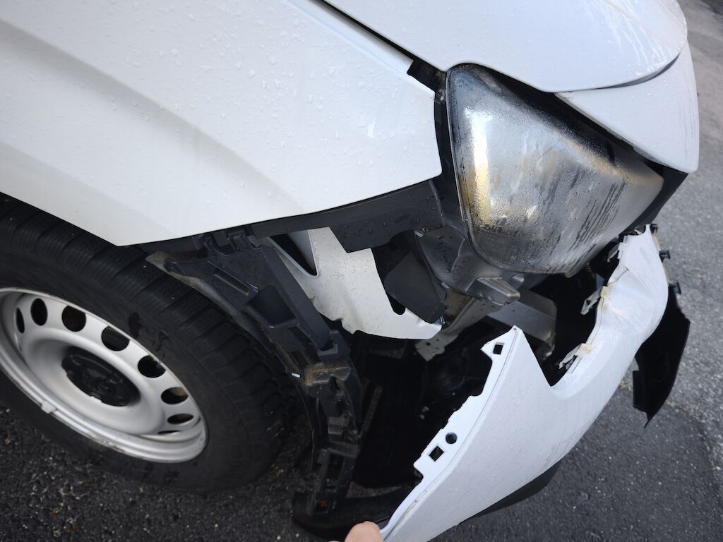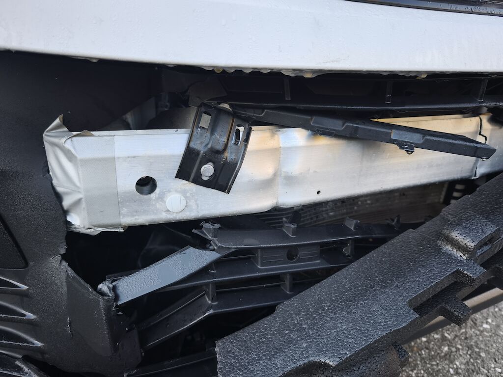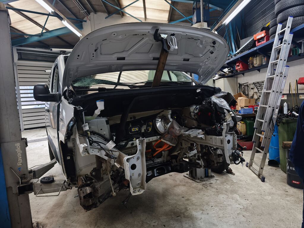 Aile avant droite, phare avant droite, pare-chocs avant, renfort de pare-chocs, radiateurs, tôle frontale, pare-brise, longeron avant droite, tourelle d’encrage d’amortisseur avant droite et châssis déformés, pare-chocs arrière gauche, etc