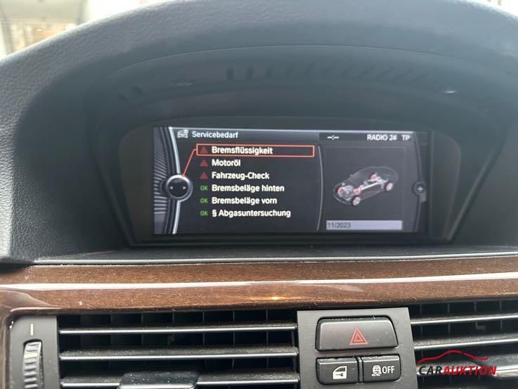 Zentralverriegelung mit Fernbedienung, Elektrische Fensterheber, Aussenspiegel elektrisch verstellbar und heizbar, Scheinwerfer-Waschanlage, Wärmeschutzglas grün, Uni-Lackierung, Leichtmetallräder Sternspeiche 339, Cornering Brake Control CBC, Servolenkung, Fahrer und Beifahrer-Airbag, Seitenairbag für Fahrer und Beifahrer, Elektronische Wegfahrsperre, Xenon-Licht, Nebelscheinwerfer vorne, ABS Antiblockiersystem inklusive Bremsassistent, Dynamische Stabilitäts-Control DSC, Dynamische Traktions-Control DTC, Klimaautomatik inkl. Mikrofilter, Sport-Lederlenkrad, Multifunktions-Lenkrad, Interieurleisten Satinsilber matt, Elektrische Sitzverstellung mit Memory für Fahrer, Lenksäule mit Höhen- und Längseinstellung, Armauflage vorn verschiebbar, Velours-Fussmatten vorn und hinten, Bordcomputer, Aussentemperaturanzeige, Check-Control, Radio BMW Business CD, Keine Gewähr auf die Angaben der Serienausstattungen