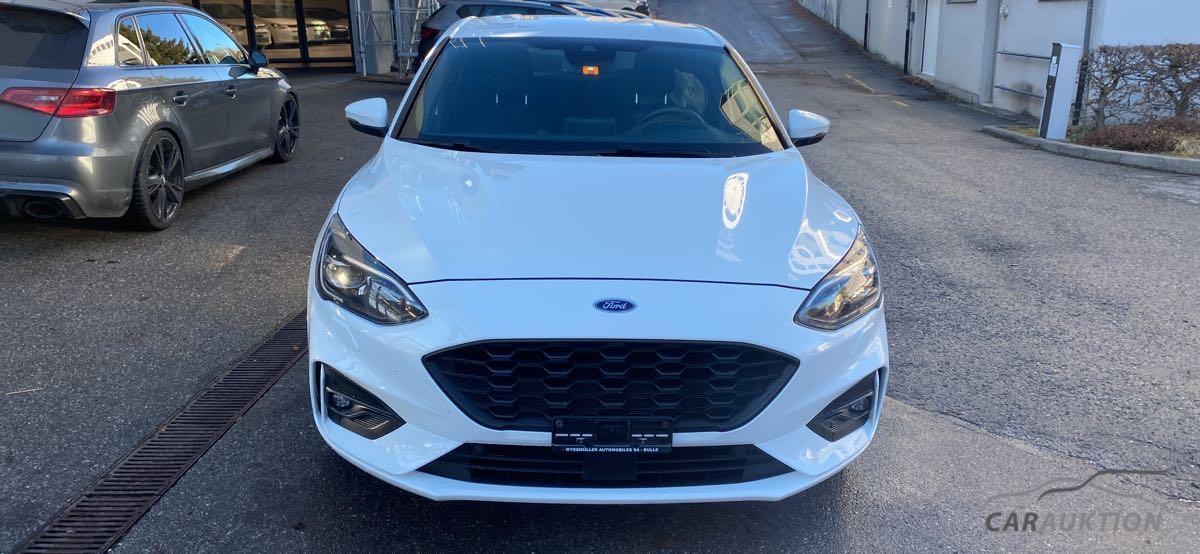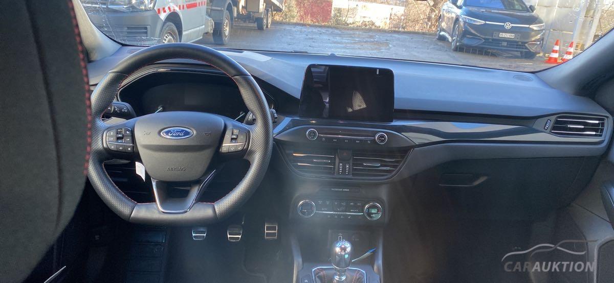 Garantie 3 Jahre/ 100’000 km, Pack Driver Assistance, Zentralverriegelung mit Fernbedienung, Stop + Start System, Elektrische Fensterheber vorne + hinten, Aussenspiegel elektrisch einklappbar, Aussenspiegel elektrisch verstellbar und heizbar, Tempomat mit Geschwindigkeitsbegrenzer, Notrad, Sportfahrwerk, Ottopartikelfilter, Airbag Fahrer und Beifahrerseite, Seitenairbag Fahrer und Beifahrerseite, Vorhangairbags, Deaktivierung Beifahrerairbag, Kindersitz-Vorbereitung Isofix, Park-Distanz-Sensor vorne + hinten, Reifendruck-Sensoren TPMS, LED Tagfahrlicht, LED-Nebelscheinwerfer, Bremsassistent EBA, HSA Berganfahrassistent, TCS Elektronische Traktionskontrolle, ESP/ ABS, Klimaanlage manuell, Sportlenkrad in Leder (unten abgeflacht), Sportpedale aus Aluminium, Sportsitze, Rücksitze umklappbar 60/40, Lendenwirbelstützen Fahrersitz inkl. Höheneinstellung, Passformteppiche vorne, Navigationssystem mit DAB+, FordPass Connect, Keine Gewähr auf die Angaben der Serienausstattungen