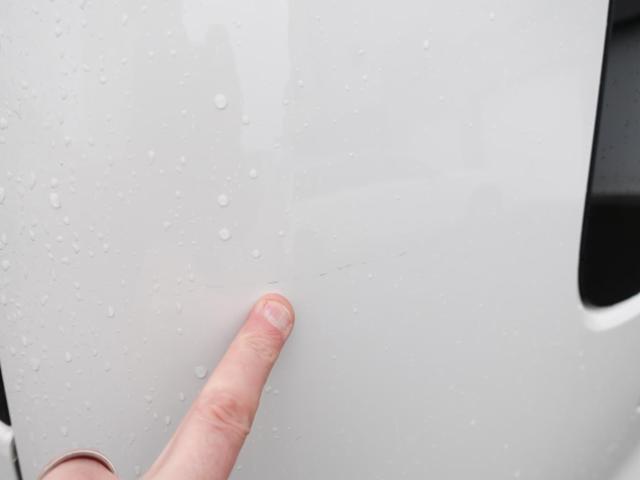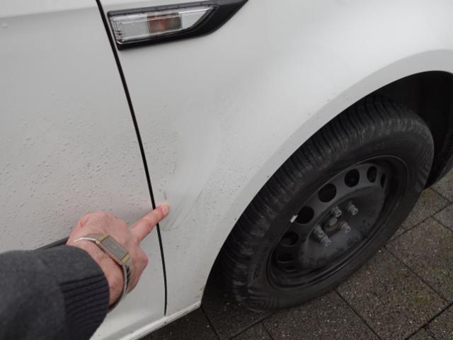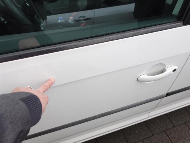 Türe vorne links verbeult, Seitenwand hinten links zerkratzt, Felge hinten rechts gestaucht, Kotflügel vorne rechts verbeult, Dachhimmel verschmutzt, Verkleidung Heckklappe beschädigt, Seitenwand hinten rechts zerkratzt