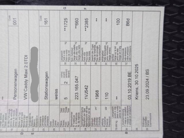 VW Caddy Maxi Kombi 2.0 TDI 150 BlueMT DSG 246’019 km – SCC