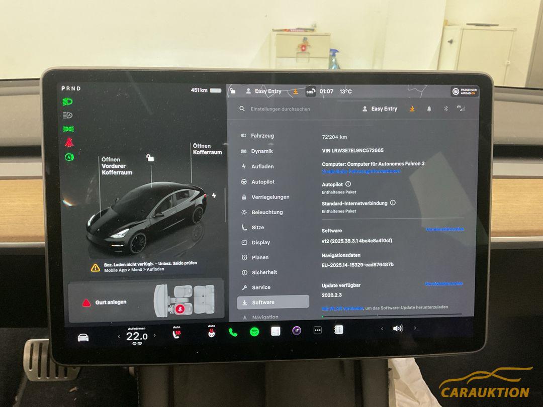 Supercharger Network Access + Pay-as-you-go, Media: Touchscreen, Assist: Notbremsassistent, Sitze: Rücksitze heizbar, Getönte Scheiben, Assist: Park Distance Control (PDC), ISOFIX Kindersitzvorrichtung, Media: Soundsystem, Sitze: Vordersitze elektrisch verstellbar 12-fach, Airbag: Airbag Beifahrer deaktivierbar, Licht: Nebelscheinwerfer, Garantie: 4 Jahre oder 80’000 km, Assist: Spurhalteassistent, Heckscheibenheizung, Aussenspiegel rechts und links beheizt, elektrisch verstell- / und einklappbar, Ladekabel, Keyless Entry, Kabinenkamera, 12-Volt-Steckdose vorne, Lackierung: Pearl-Lackierung, Assist: Rückfahrkamera, Lenkrad: Lenkrad längs- und höhenverstellbar, Lenkrad: Multifunktionslenkrad, Wegfahrsperre elektronisch, Garantie: 8 Jahre oder 192’000 km auf Elektroantriebssystem und Batterie (ab 1. Inv.), Getriebe: Direktantrieb, Servolenkung, Licht: Nebelschlussleuchte, Sitze: Rücksitze, Umklappar, Assist: Kollisionswarnung, Licht: LED Scheinwerfer, Airbag: Seiten- und Kopfairbags, Assist: Adaptive Cruise Control, Airbag: Airbag Fahrer und Beifahrer, Lenkrad: Lenkrad elektrisch längs- und höhen-verstellbar, Bordcomputer, Assist: ABS und TCS, Sitze: Vordersitze heizbar, Media: Navigationssystem mit Onboard-Karten, Sitze: Kopfstützen verstellbar, Assist: Autopilot Basic, Media: Bluetooth, Assist: Parkassistent, Innenraumbeleuchtung – Deckenleuchten – Ambientebeleuchtung – Leseleuchten – Lenkradbeleuchtung, Heckklappe elektrisch, Media: Bluetooth Freisprecheinrichtung, Media: Media Player – Radio – Bluetooth – Streamen – Spotify – Caraoke – TuneIn – Tidal, Klima: Klimatisierungsautomatik, Assist: Lenkassistent – Mit den neuen Tesla Vision-Kameras, Sensoren und der erhöhten Rechenleistung kann Ihr Tesla nun über komplexere Strassenführungen navigieren., Reifendruck-Kontrollanzeige, Panorama-Glasdach, Licht: Drittes Bremslicht LED, Licht: LED-Tagfahrlicht, Dekor: All Black Premium Interior, Polster: Kunstleder-Polsterung