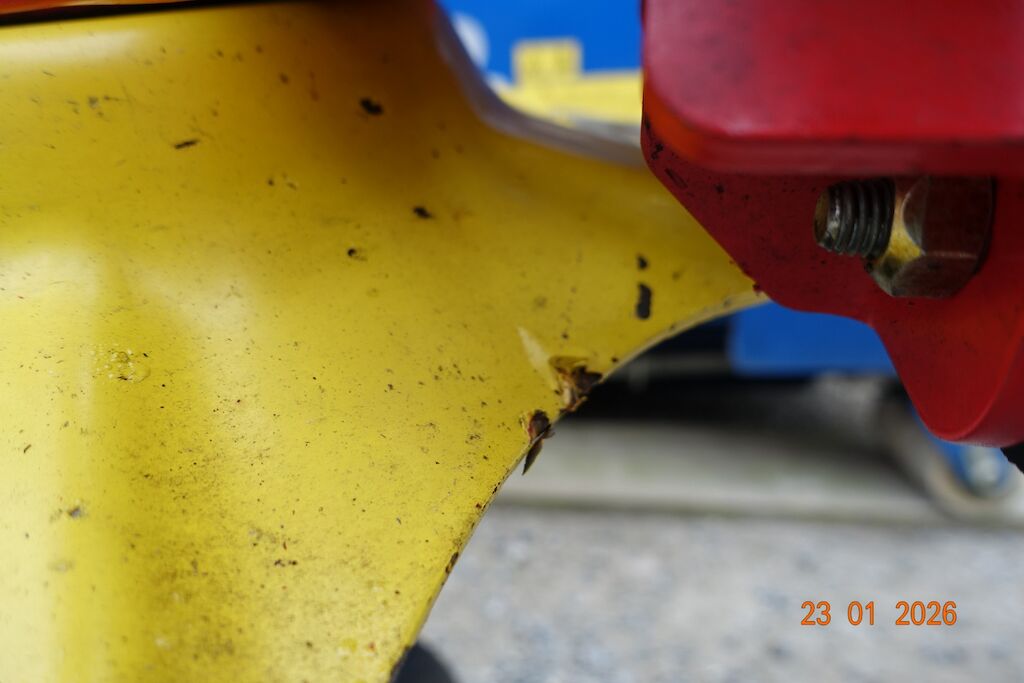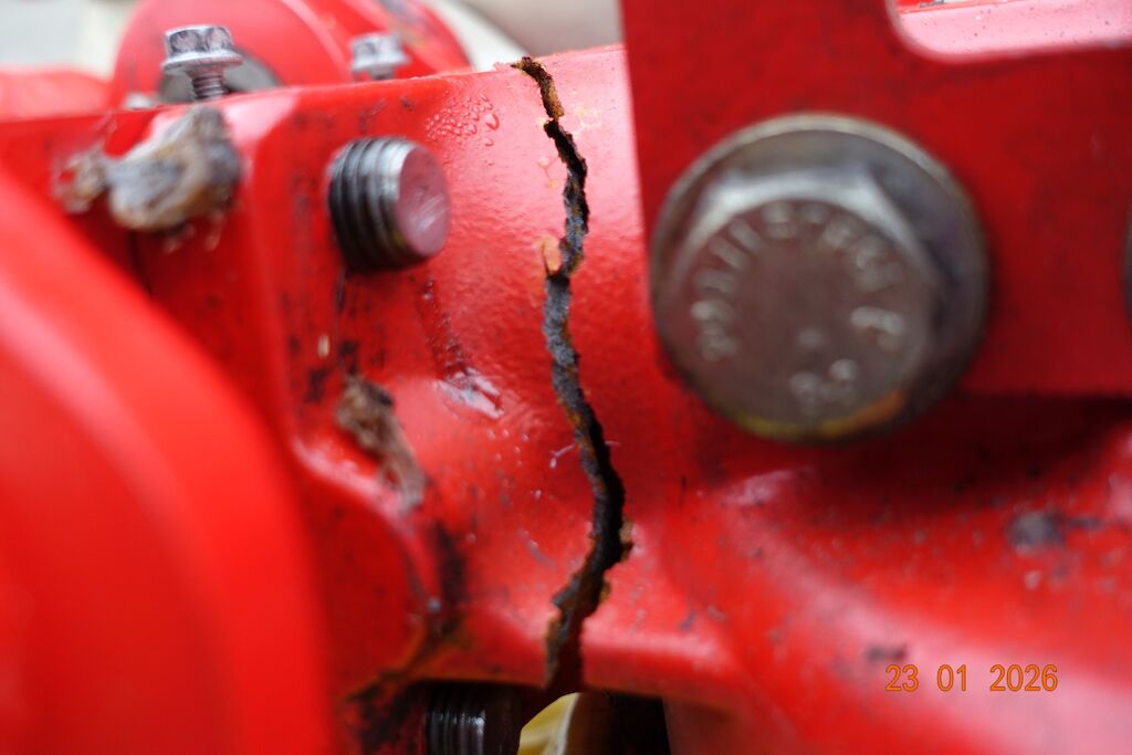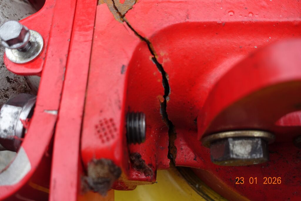 Das Getriebegehäuse des äussersten Gelenkes L ist gebrochen. Durch die Kollision hat es die Antriebswelle verzogen.