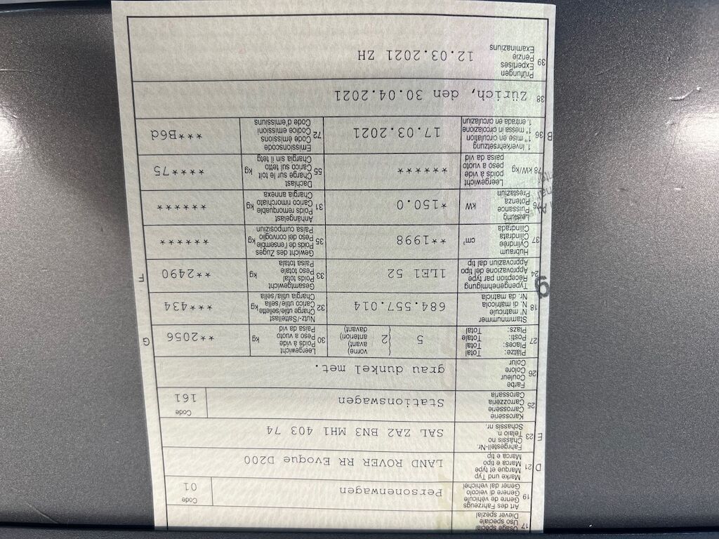 | Numero telaio | SALZA2BN3MH140374 |